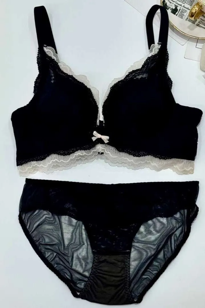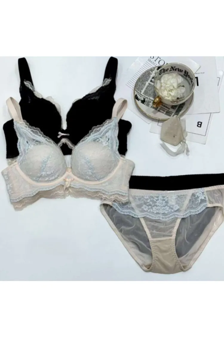 HP114層次配色蕾絲組(內衣+內褲) 藍 黑 S M L 官網價$920 永恆甜甜價$890