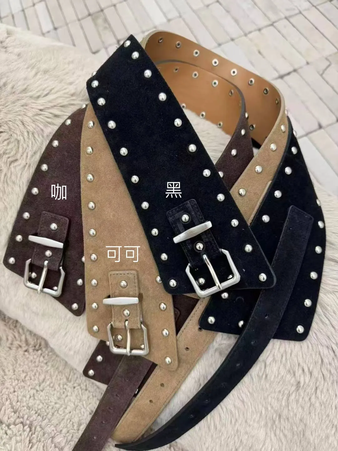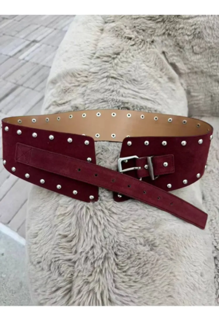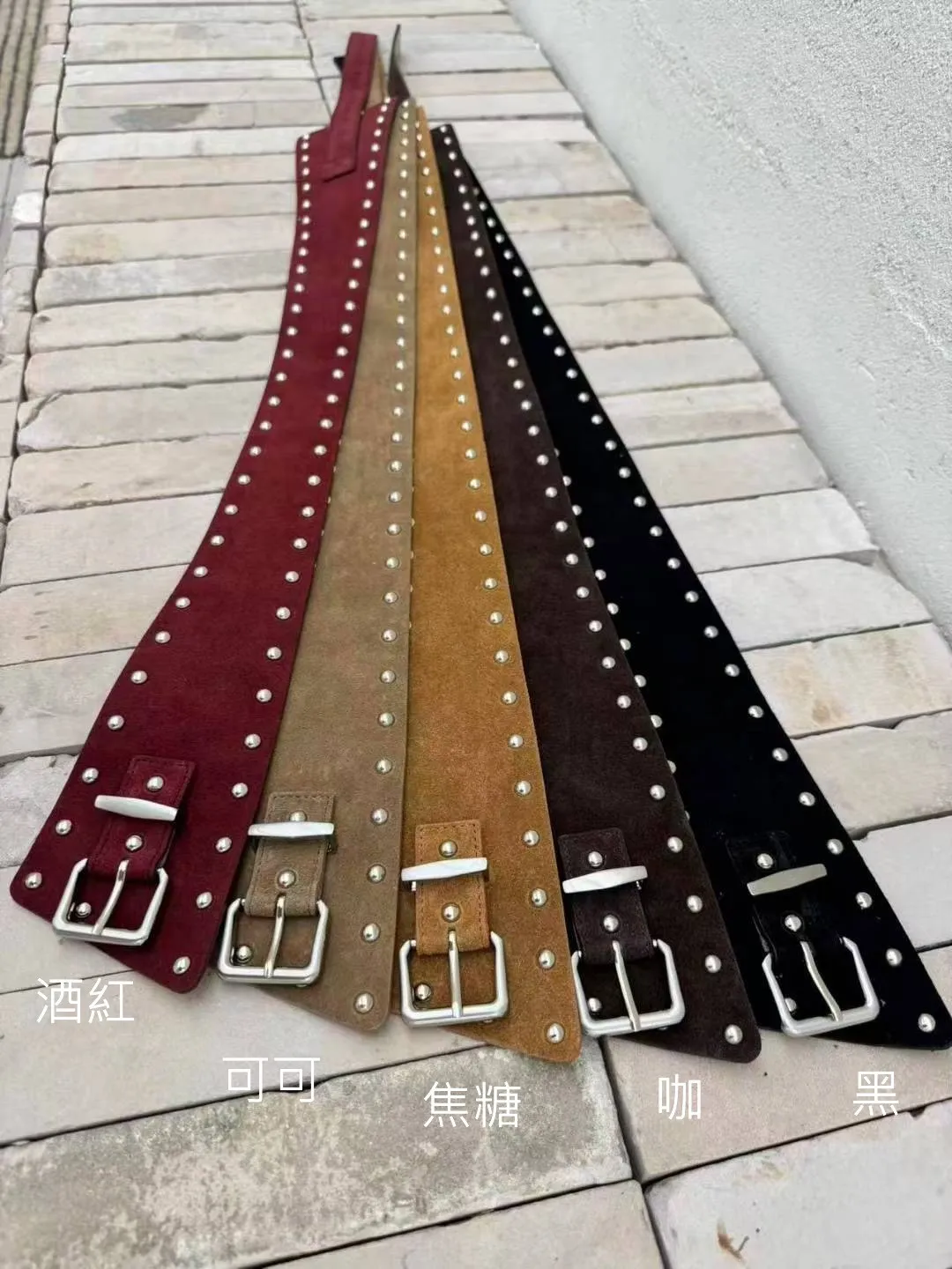 HP150套裝的義大利麂皮鉚釘腰封皮帶 黑 咖 焦糖 可可 酒紅 官網價$950 永恆甜甜價$920