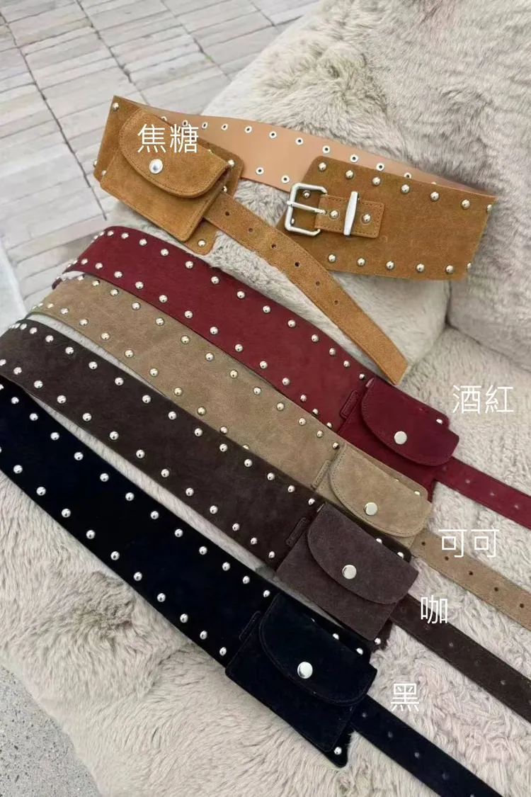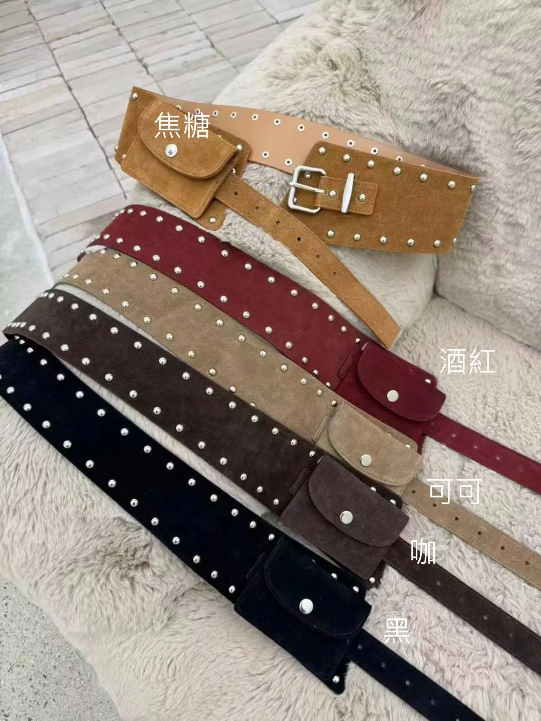 義大利牛皮 麂皮款 遮腹顯瘦 韓國製造 寬度5.5-9公分 全長73公分