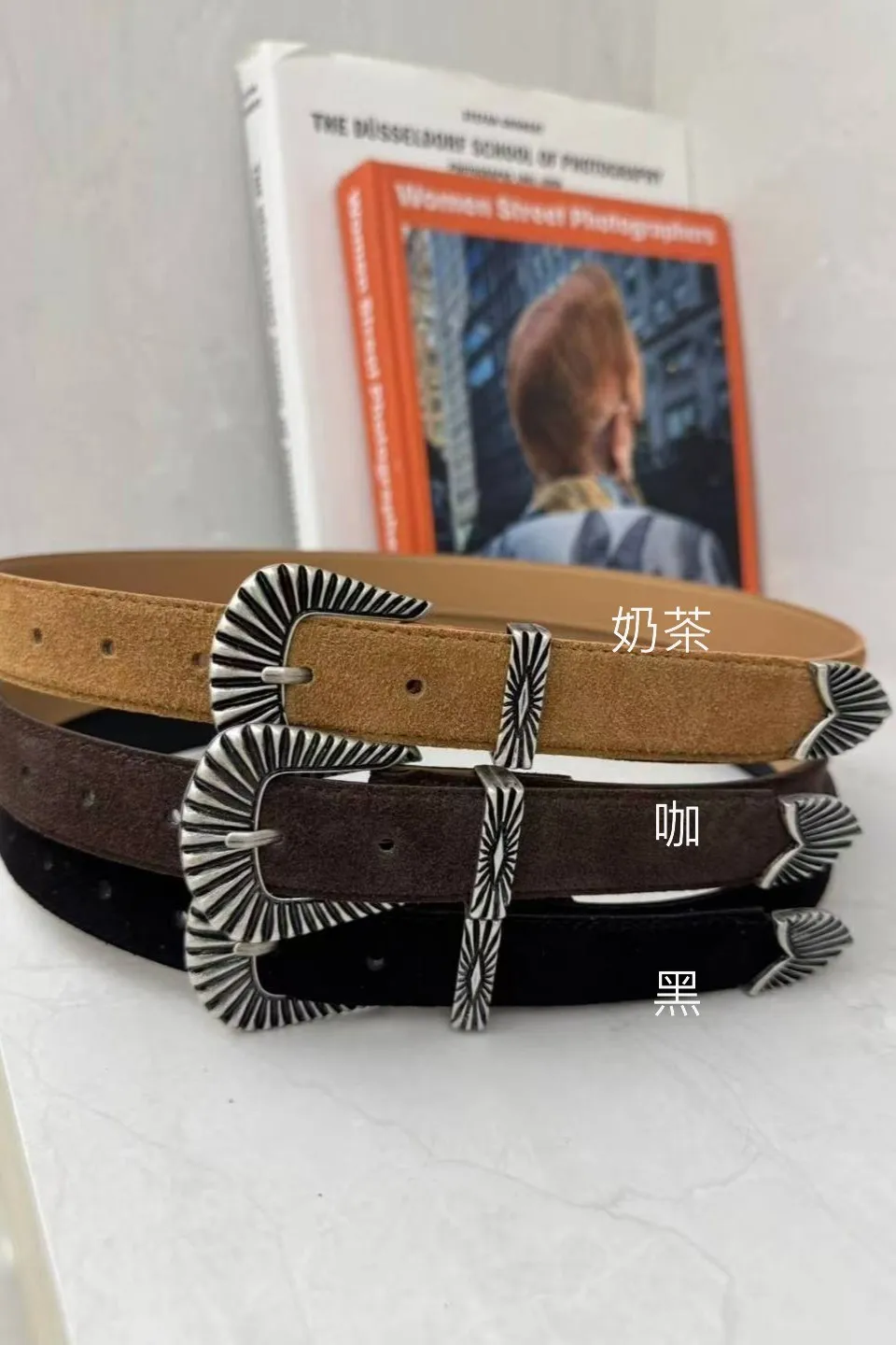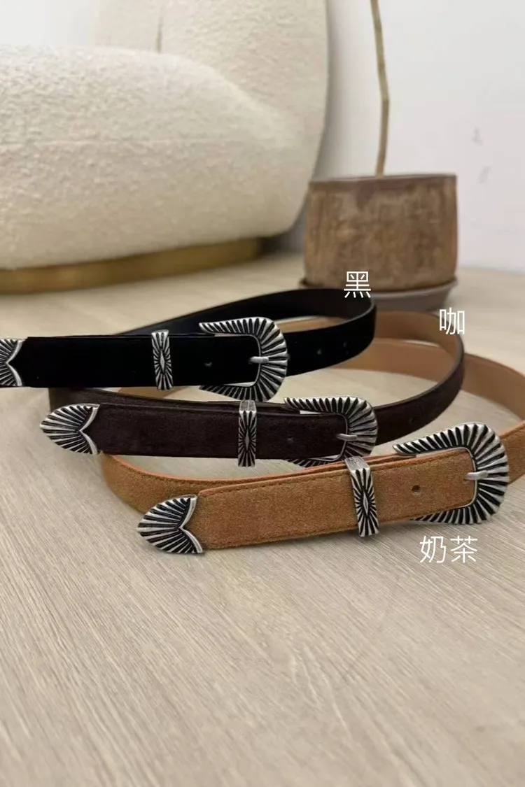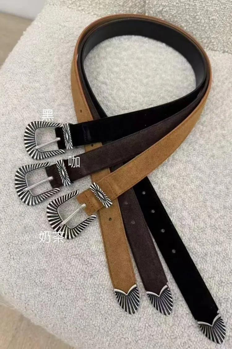 義大利牛皮 韓國製造 麂皮面料 仿舊銀釦 質地輕盈 寬2.8*全長99公分
