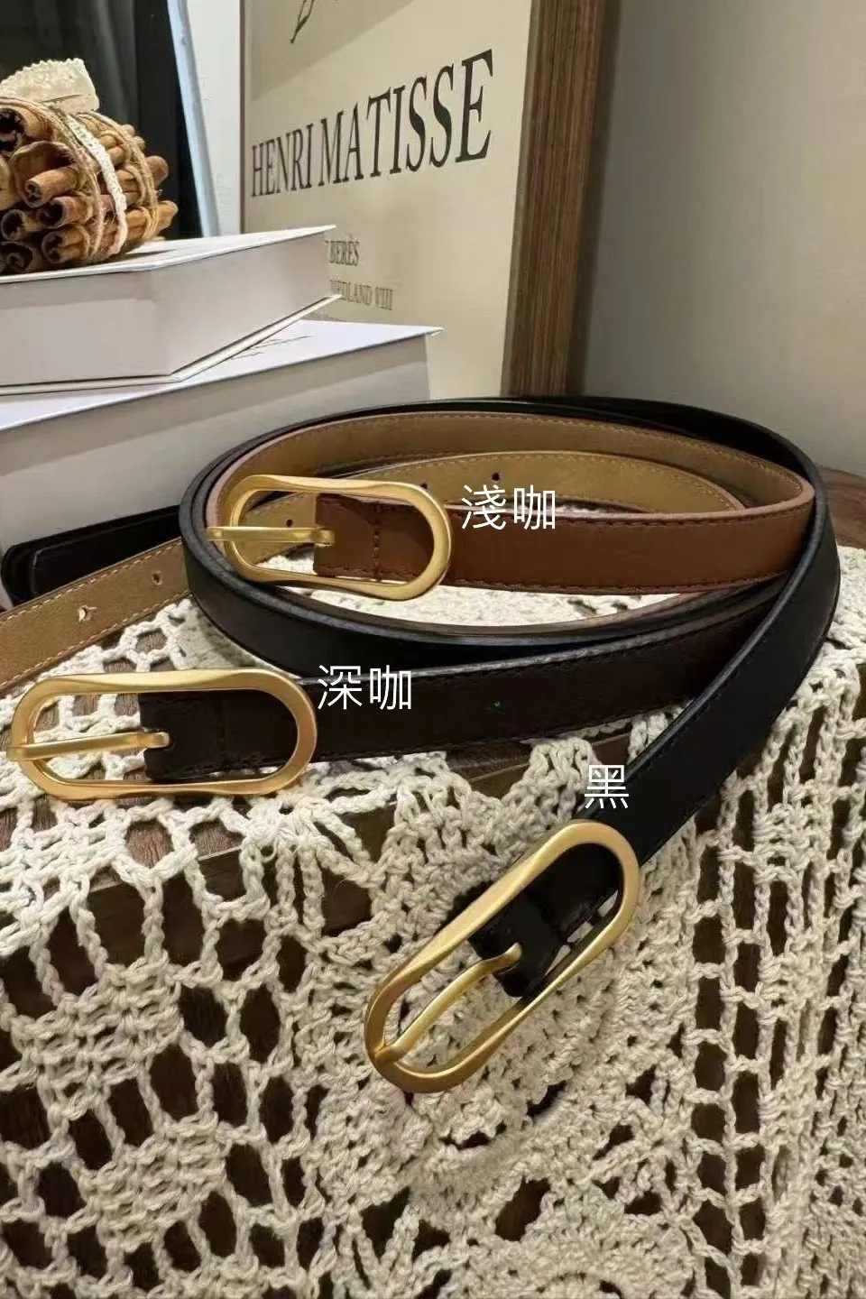 HP167氣質細橢圓金框牛皮皮帶 淺咖 深咖 黑 官網價$480 永恆甜甜價$450