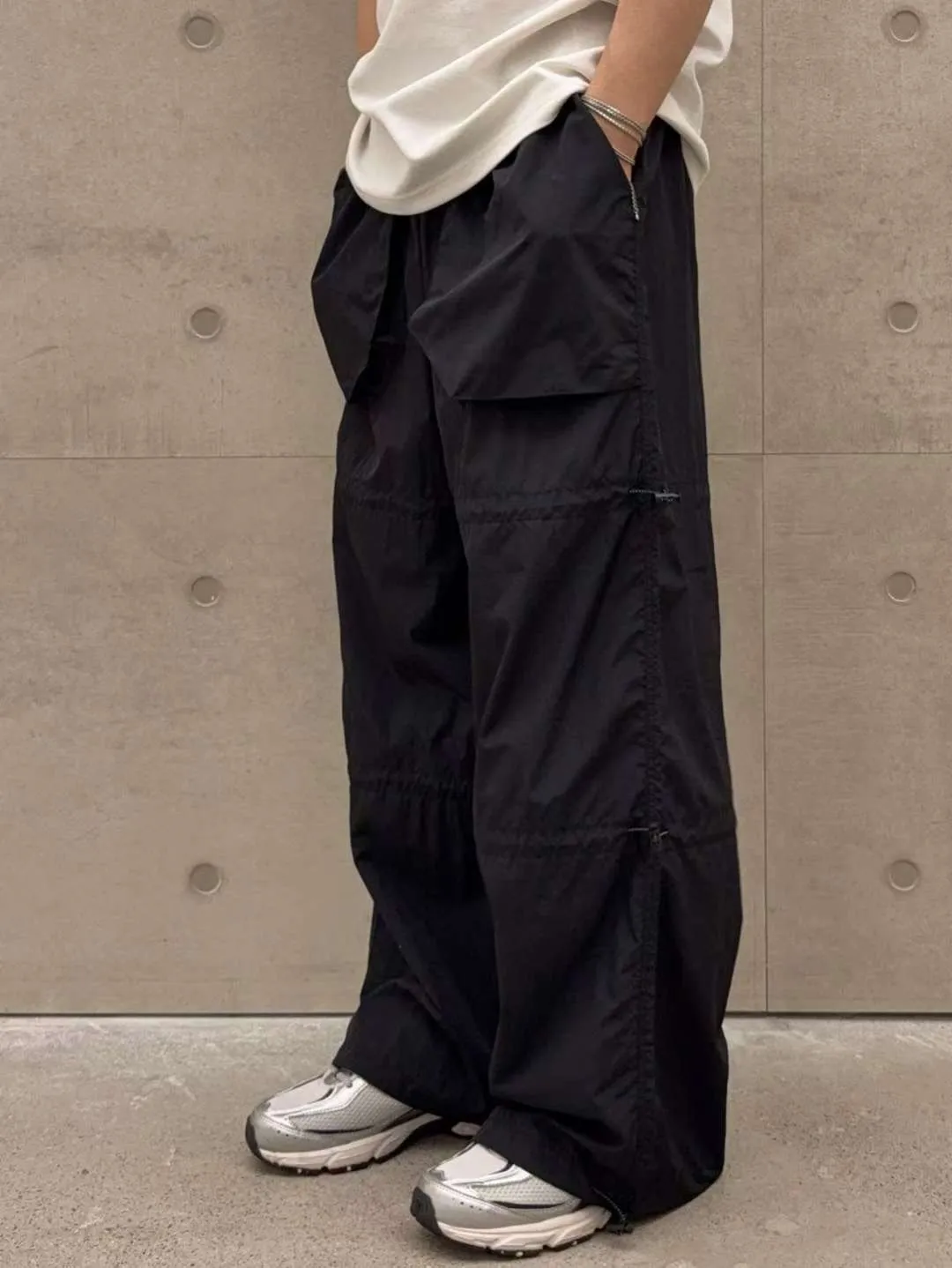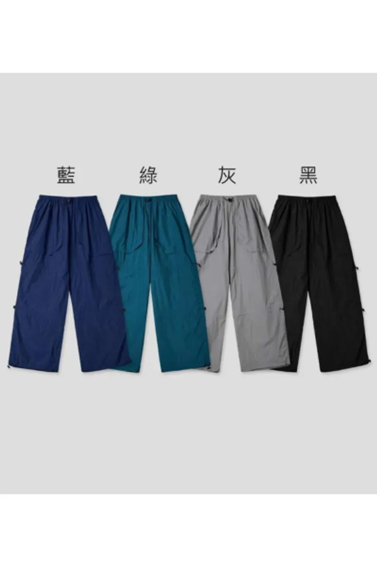 尼龍 全腰鬆緊 涼感輕盈 有口袋 褲側和褲管抽繩