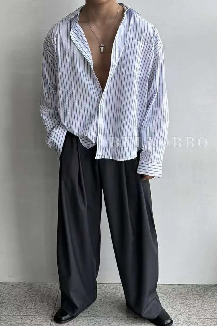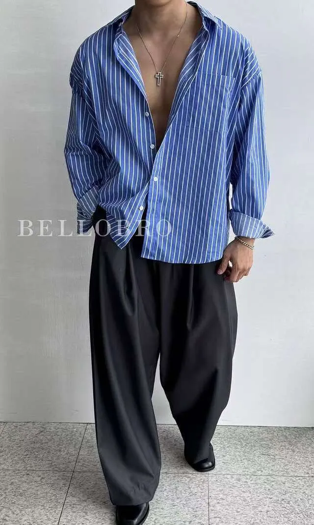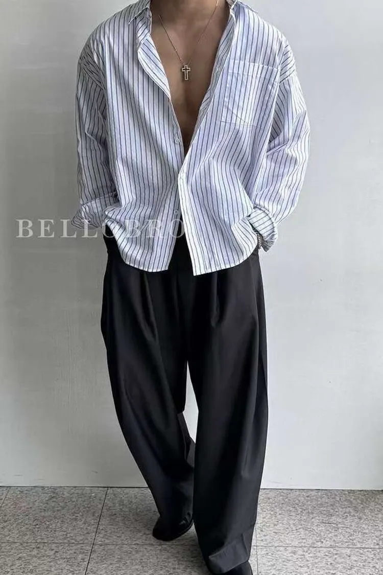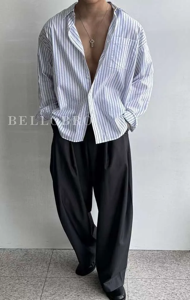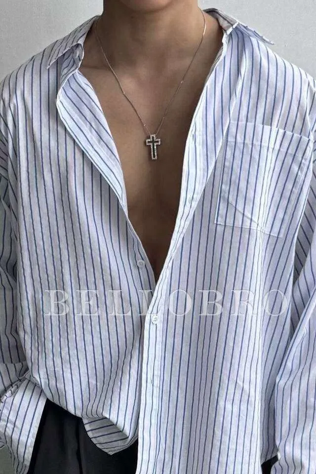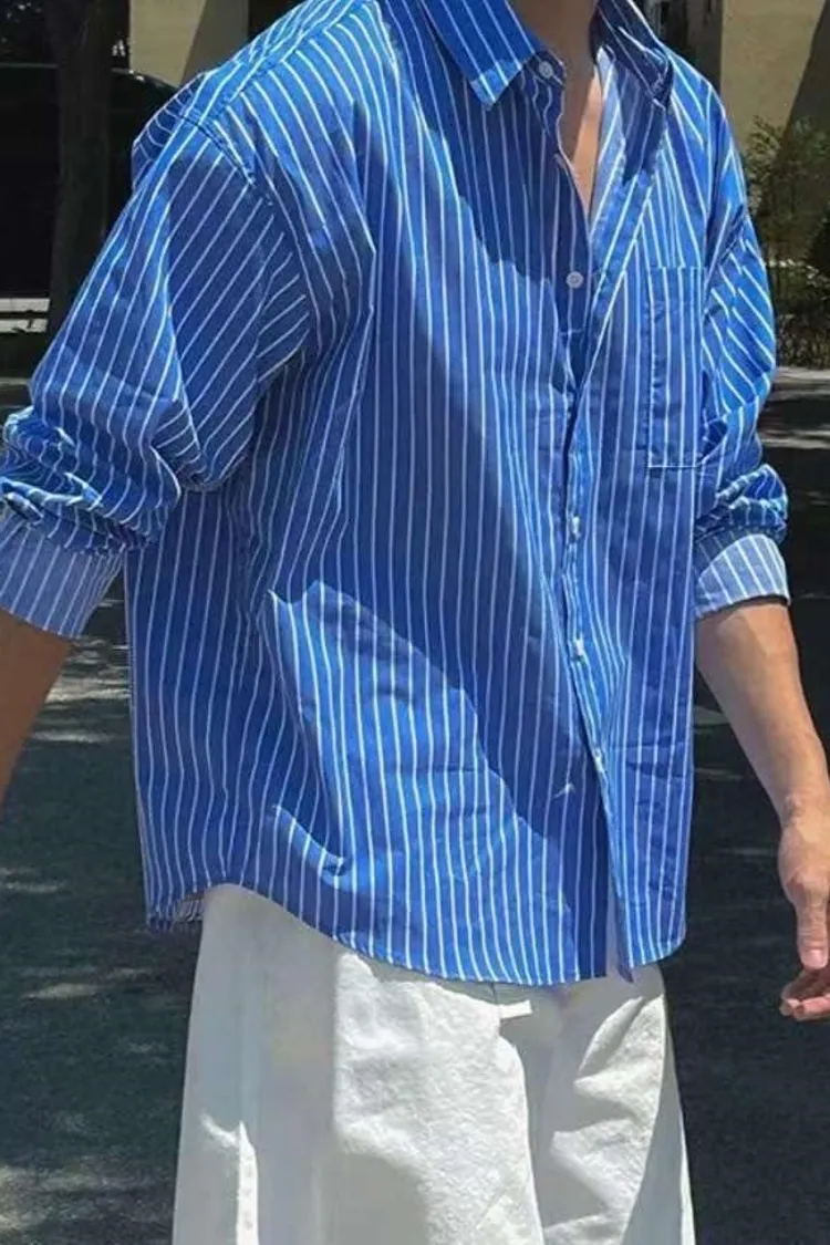 HP242經典直條紋長袖襯衫 白 藍 官網價$950 線上價$920