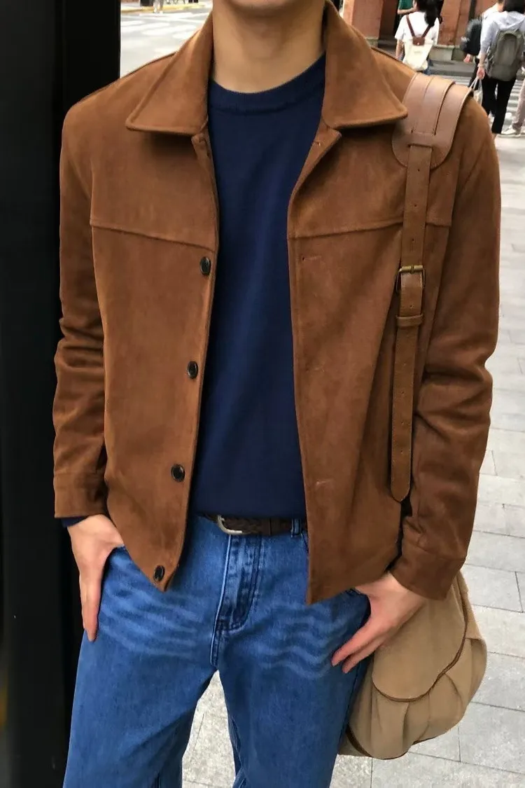 麂皮 觸感細緻 排釦穿脫 無內裡 簡單俐落 有口袋