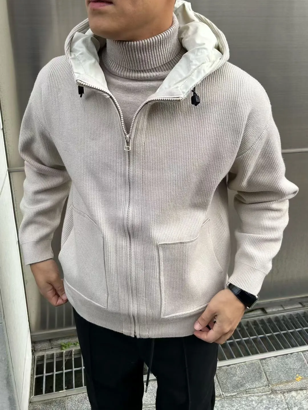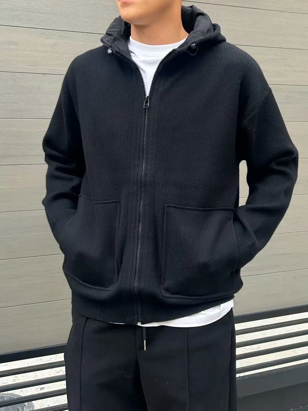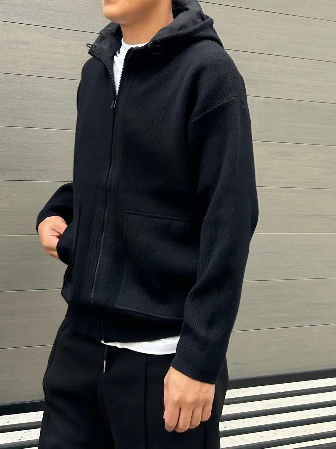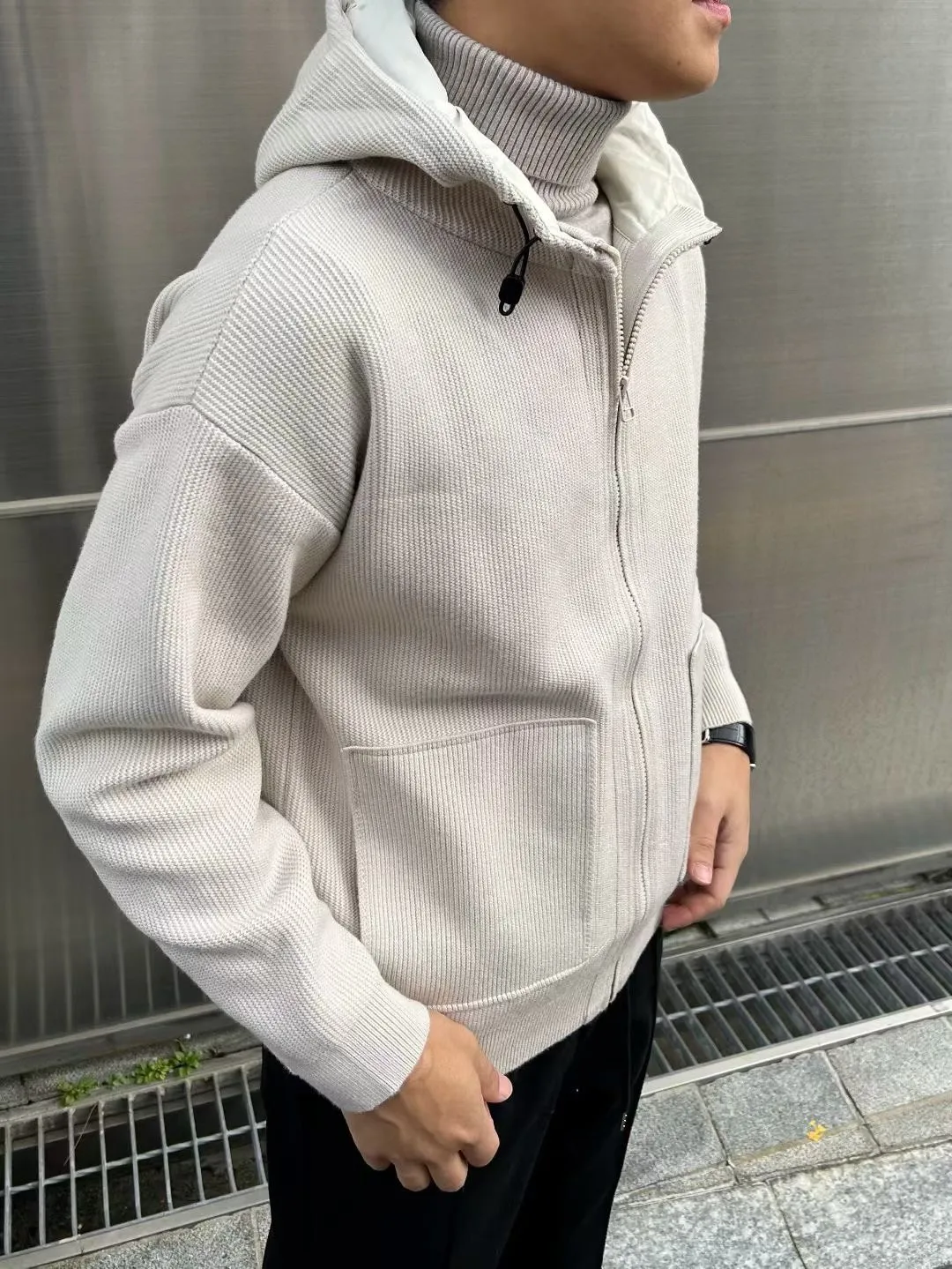 聚酯+壓克力+尼龍 坑條棉 觸感柔軟 材質舒服 拉鍊穿脫 帽子有內裡