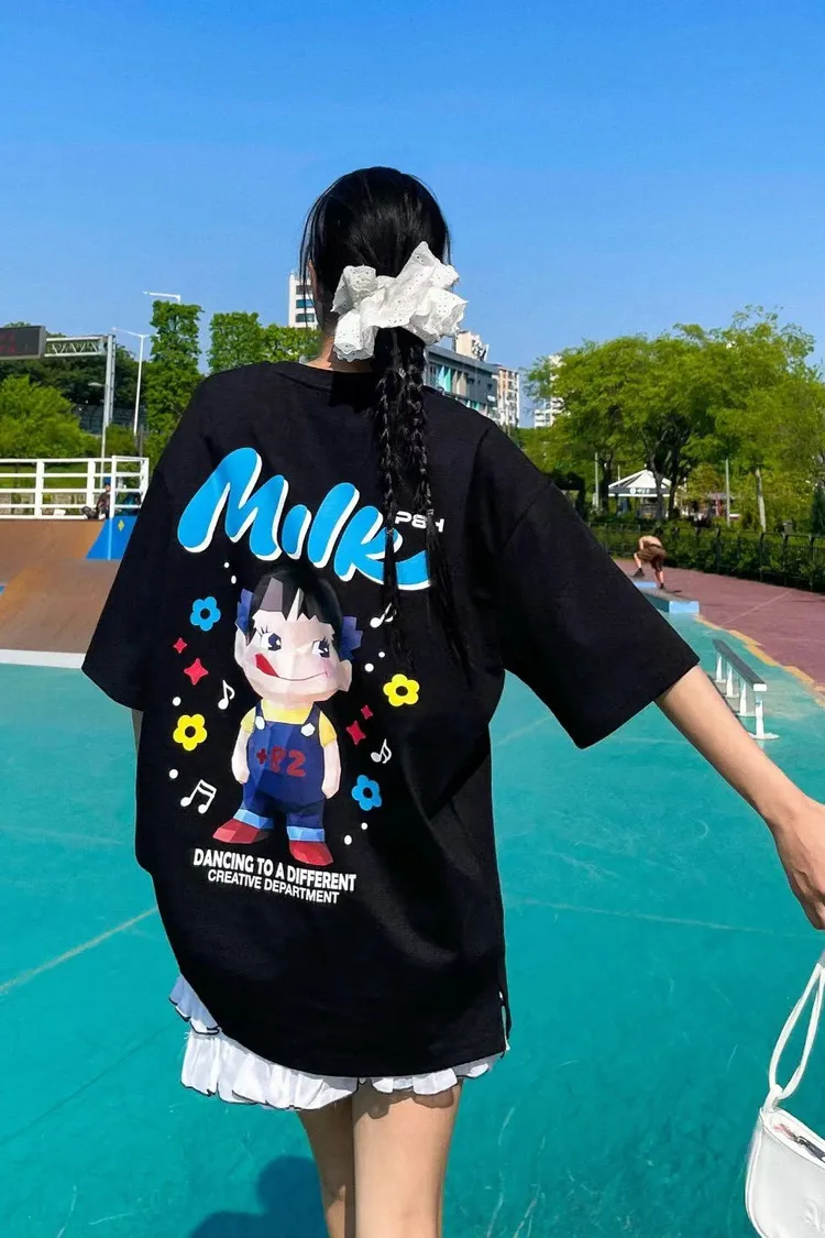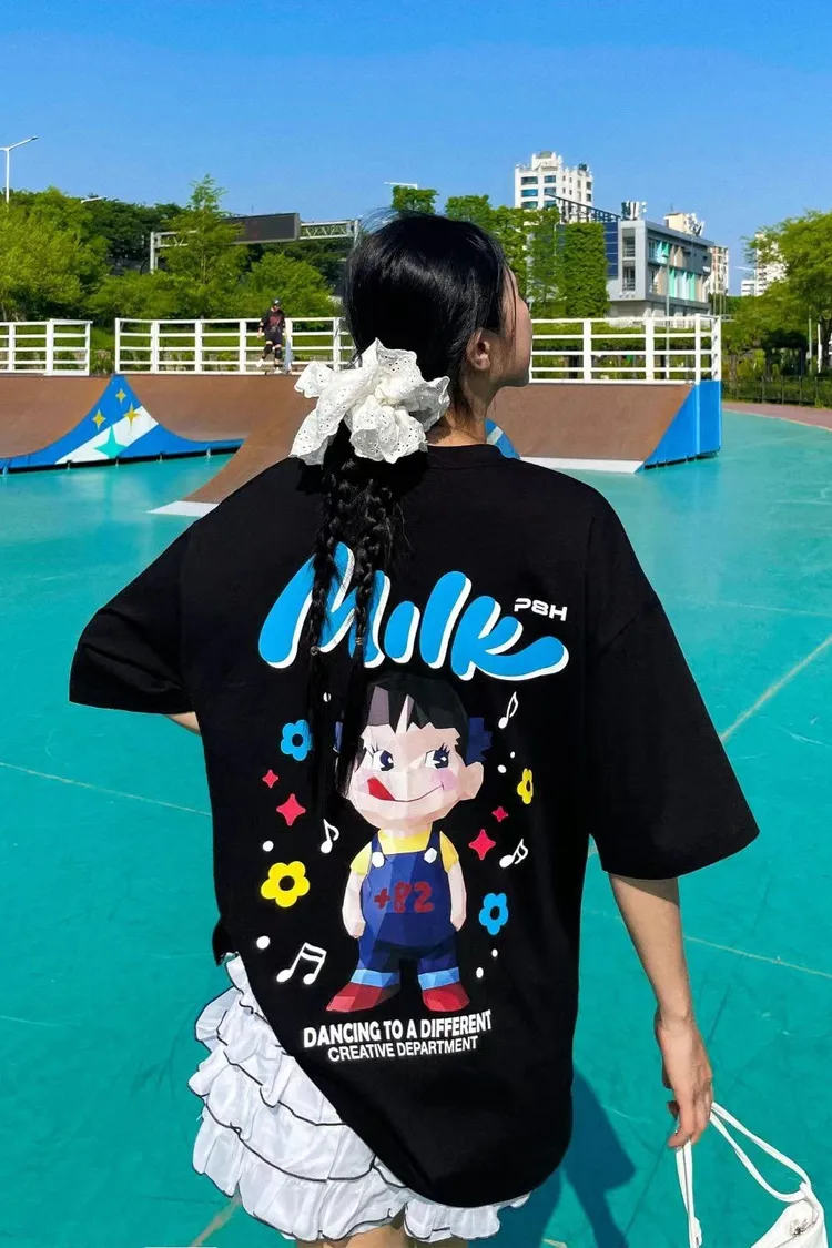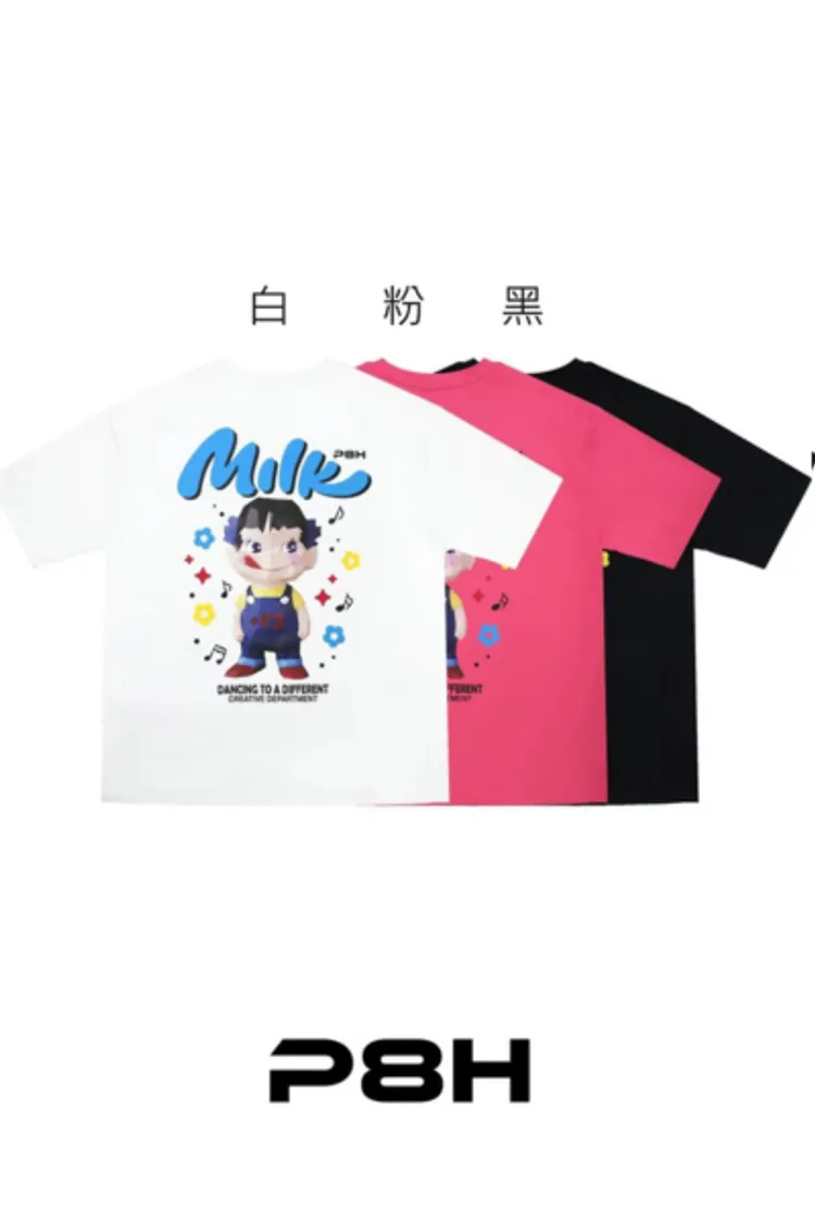 HP299繽紛貪吃鬼牛奶妹妹短袖Tshirt 白 粉 黑 官網價$680 線上價$650