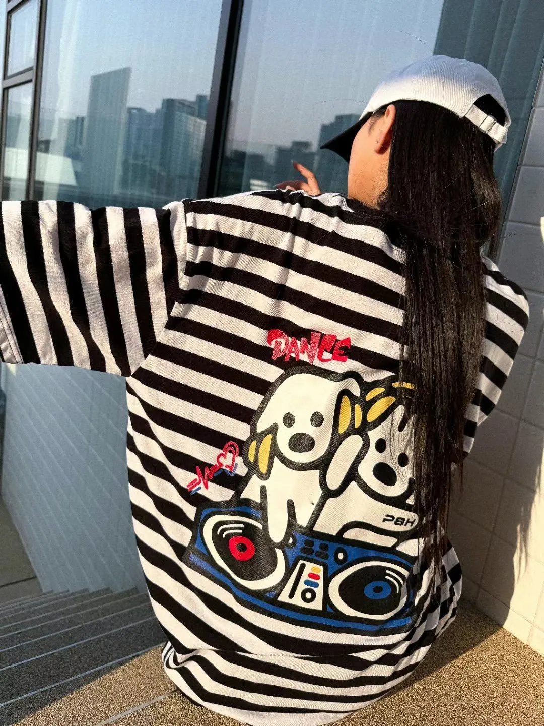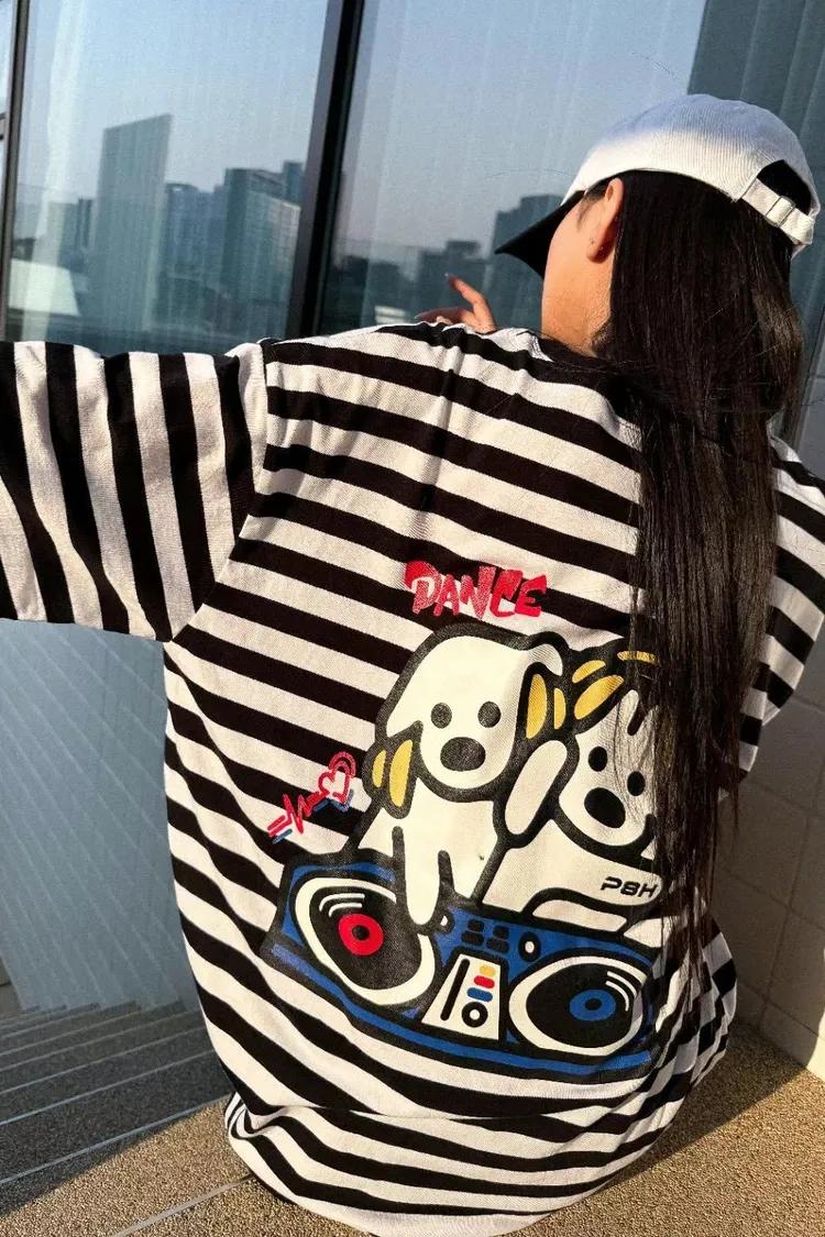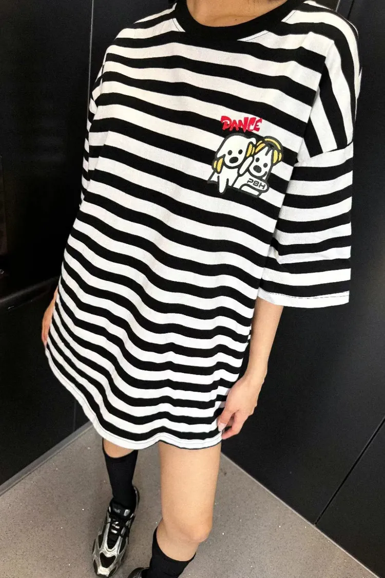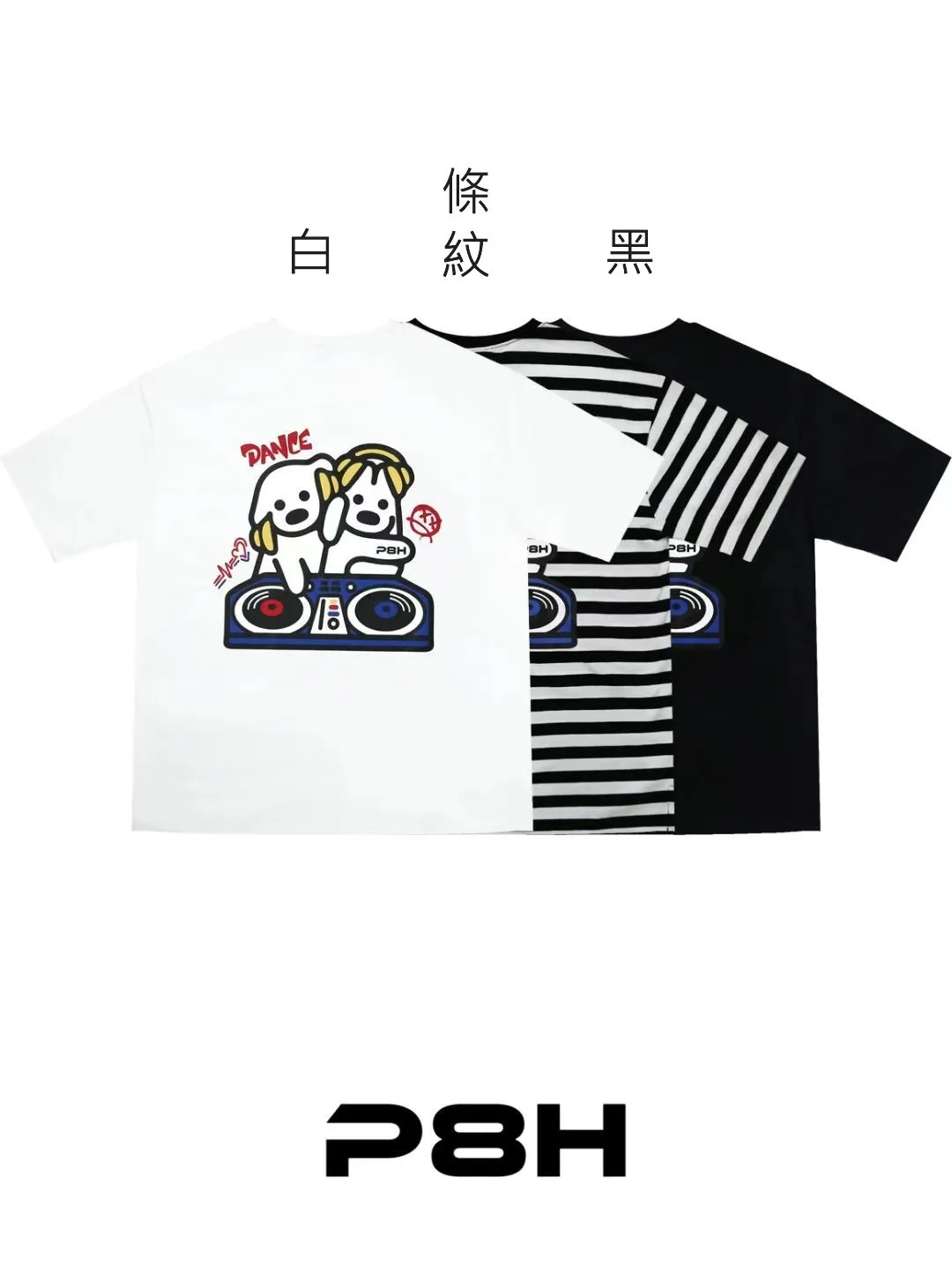 HP301可愛DJ狗狗短袖Tshirt 白 黑 條紋 官網價$680 線上價$650