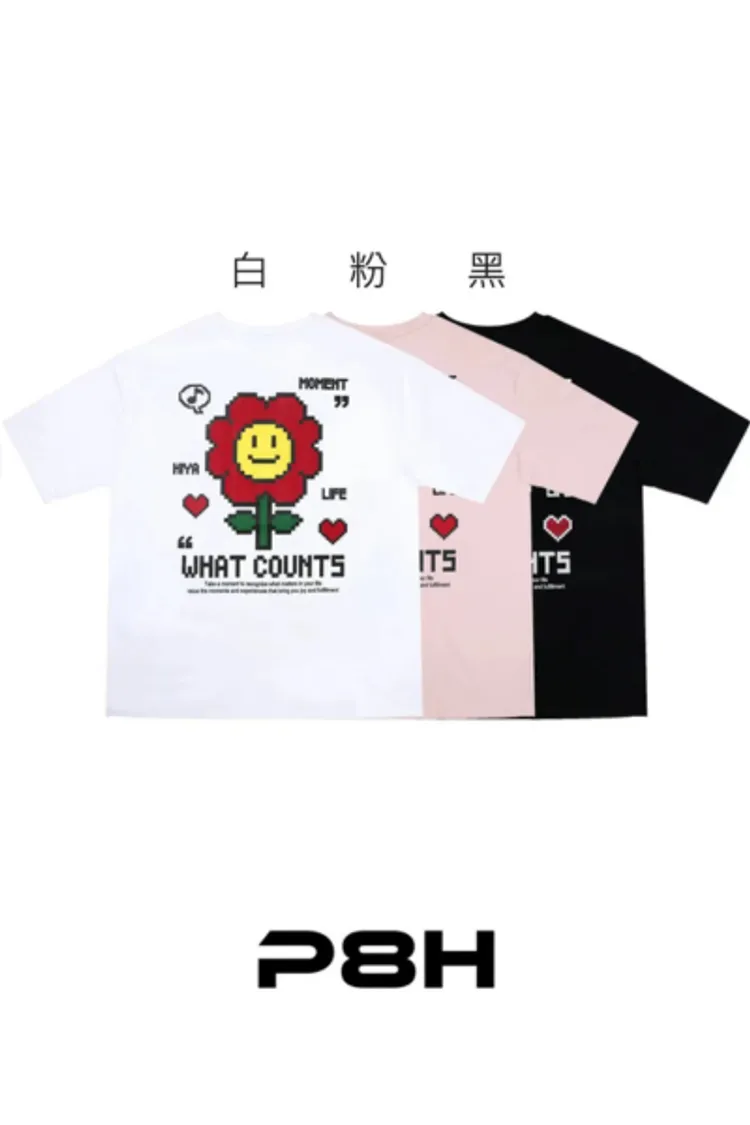 HP303任天堂小花愛心短袖Tshirt 白 粉 黑 官網價$620 線上價$590