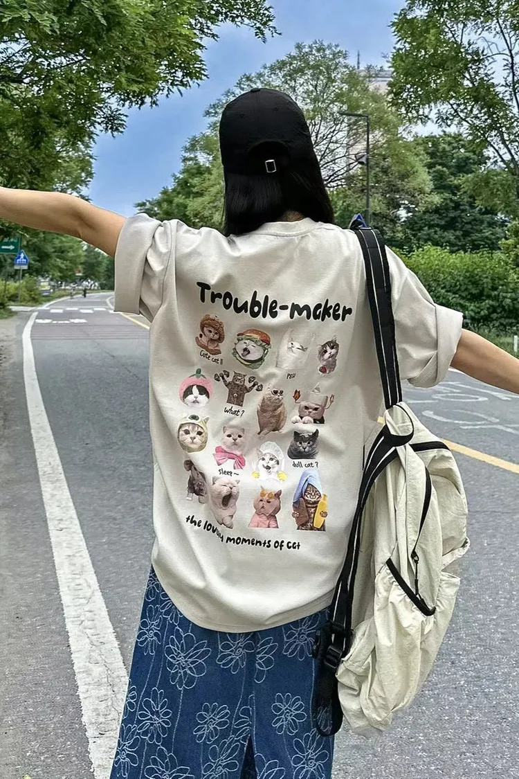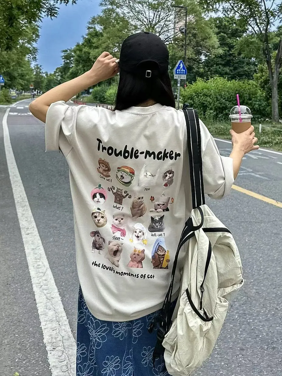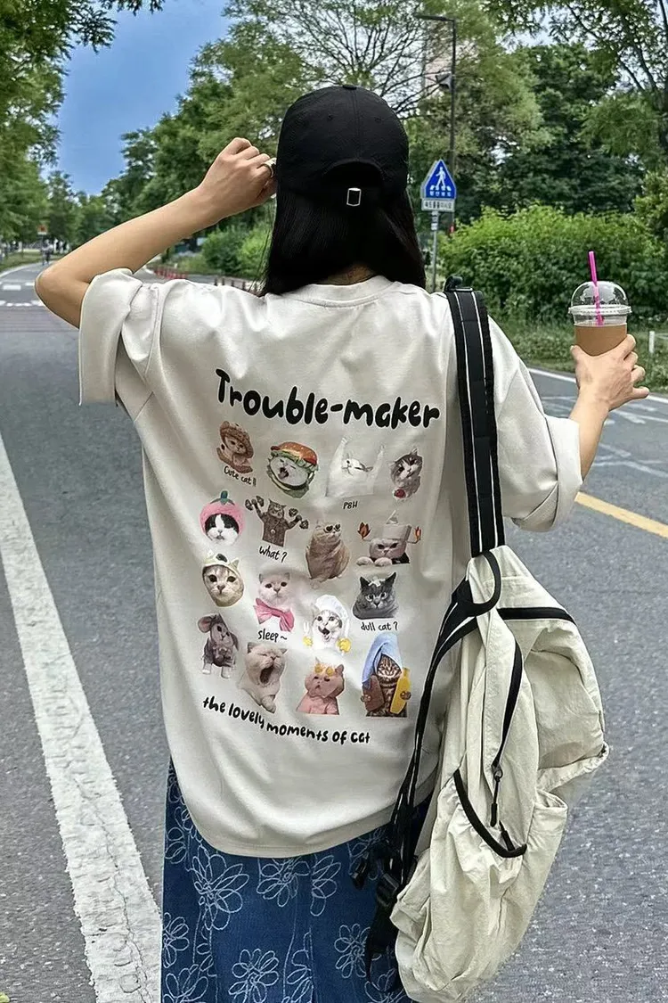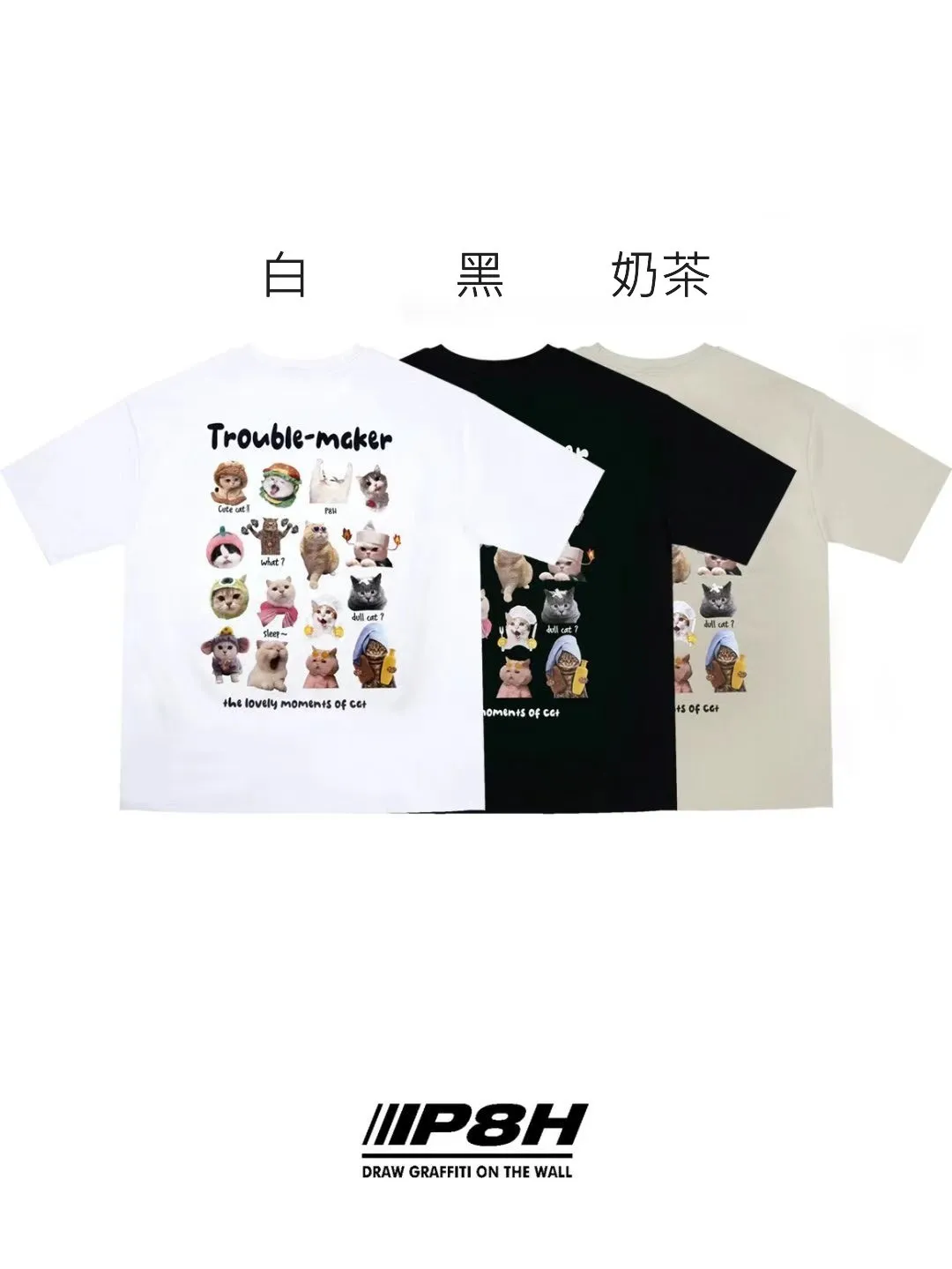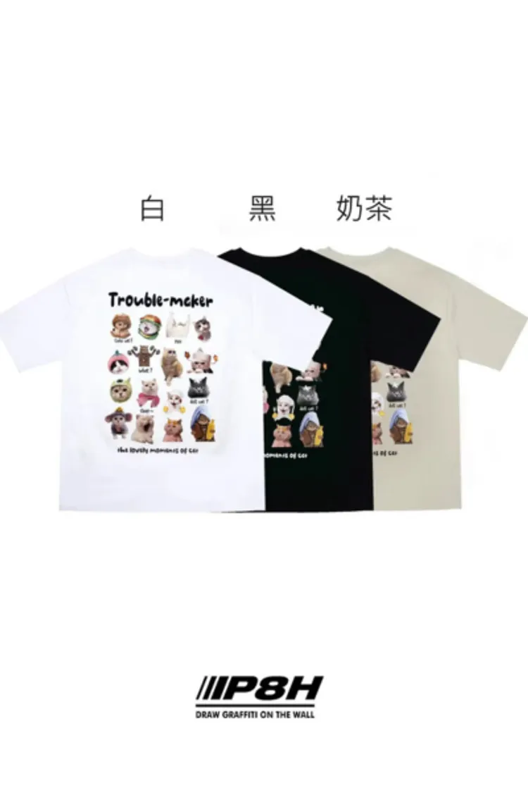 HP304惹麻煩小貓咪短袖Tshirt 白 黑 奶茶 官網價$720 線上價$690