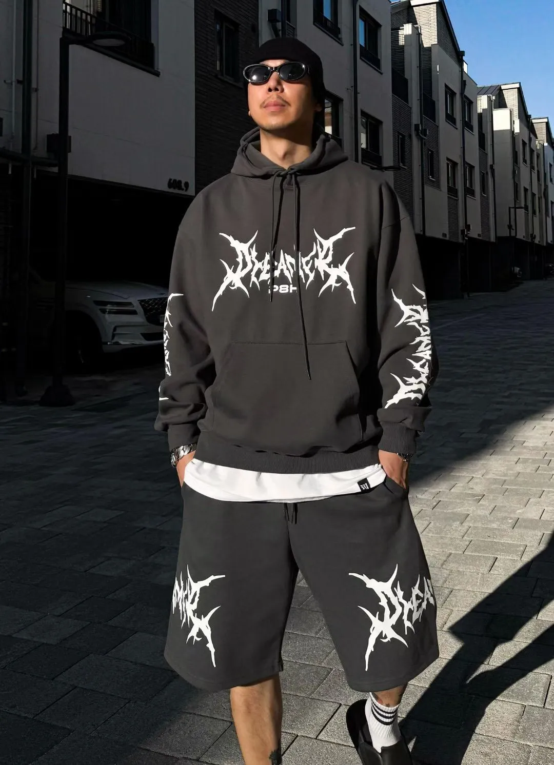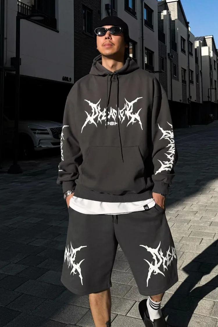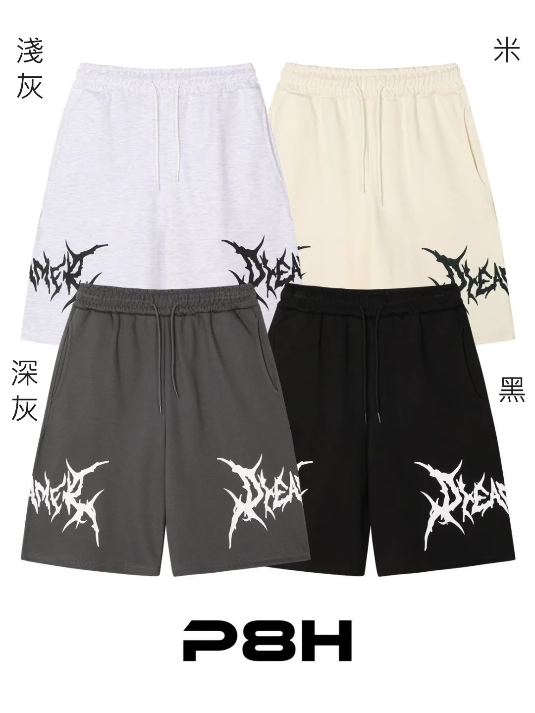 HP319加開款閃電剪影連帽短褲 米 淺灰 深灰 黑 官網價$680 線上價$650