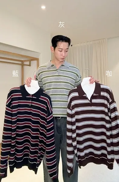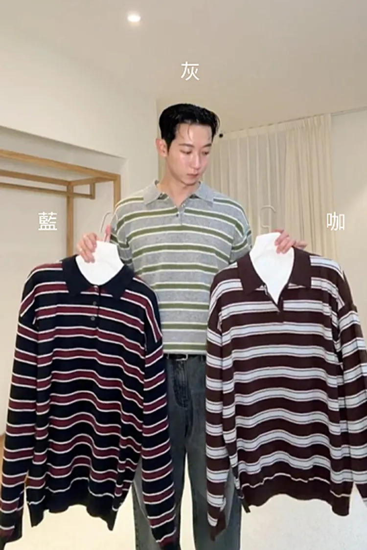 HP333紳士條紋POLO衫(領子分色) 灰 咖 藍 官網價$1380 線上價$1350
