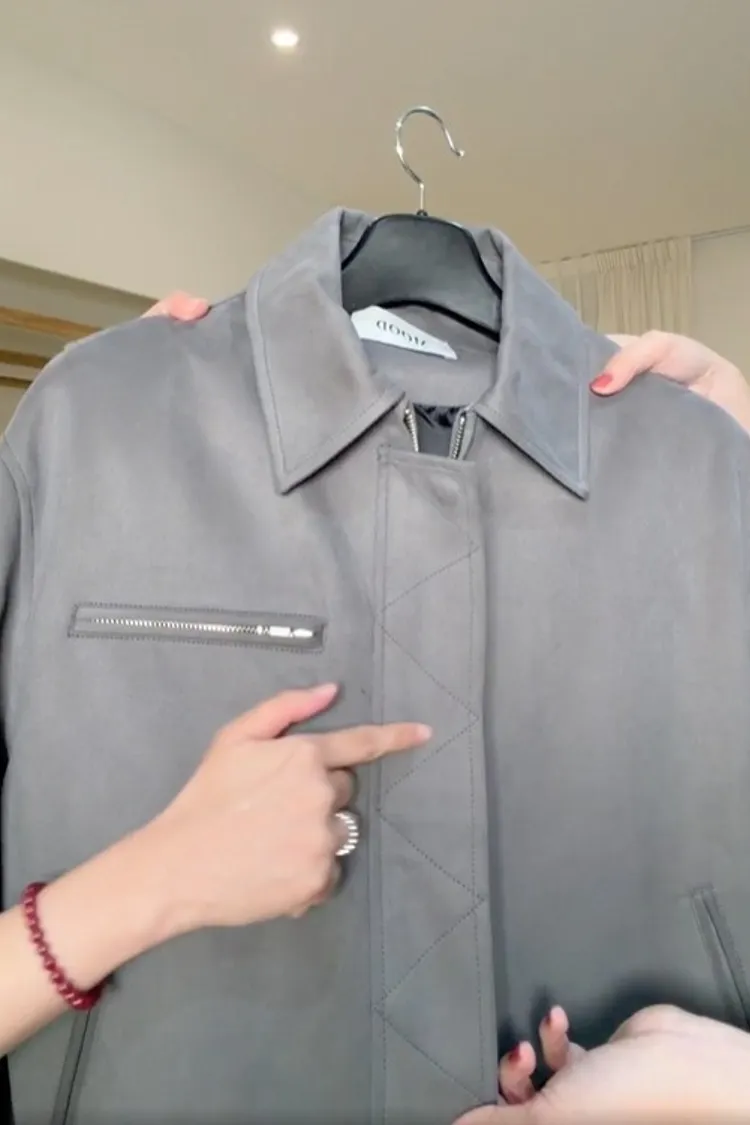 HP341推薦款俐落帥氣麂皮拉鍊外套 灰 黑 淺咖 深咖 官網價$2620 線上價$2590 麂皮 推薦款五顆星 質感面料很好 有內裡 適合180L號以下 輕盈不重 肩寬50胸寬59臂寬28袖長61袖口14全長64
