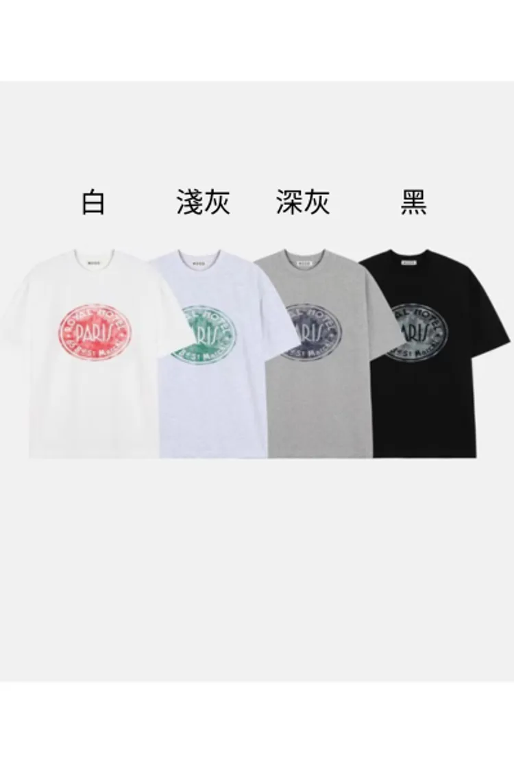 HP351特價PARIS美式印章Tshirt 白 黑 淺灰 深灰 原價$880 特價$420 特價限量,只有白27,黑28,淺灰34,深灰29 特價+1視同購買,購物車無法自行刪除 肩寬57胸寬62臂寬25袖長24袖口19全長73
