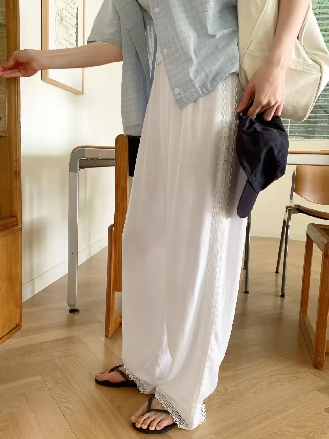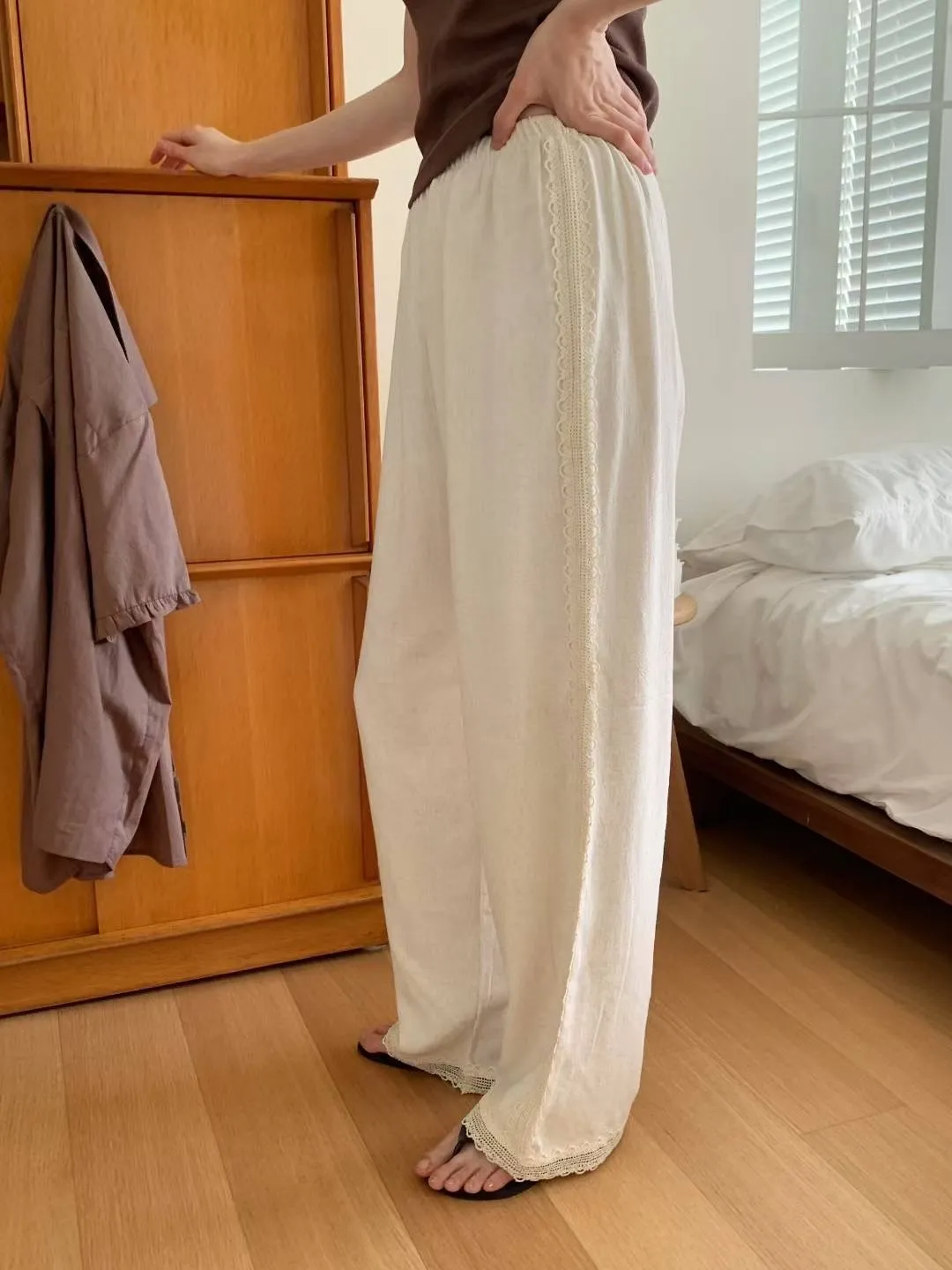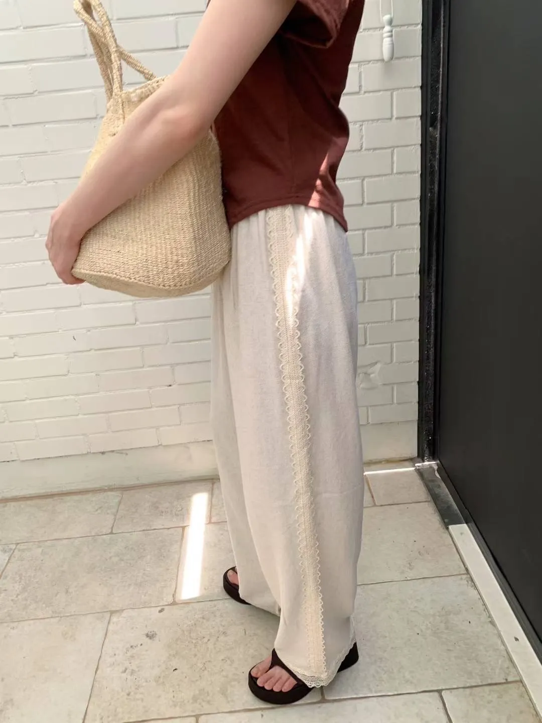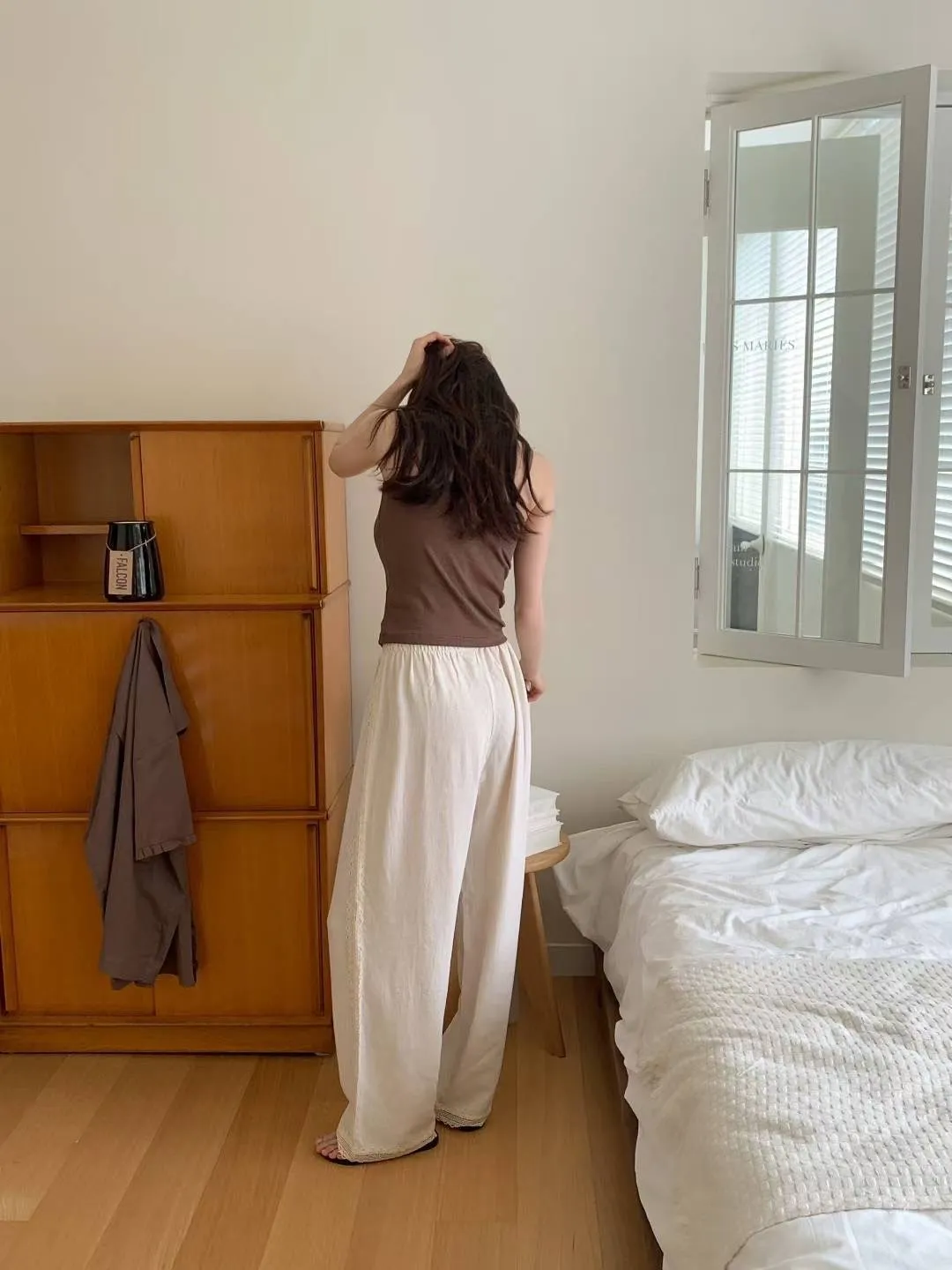 棉+亞麻 透氣舒適 全腰鬆緊 適合夏天