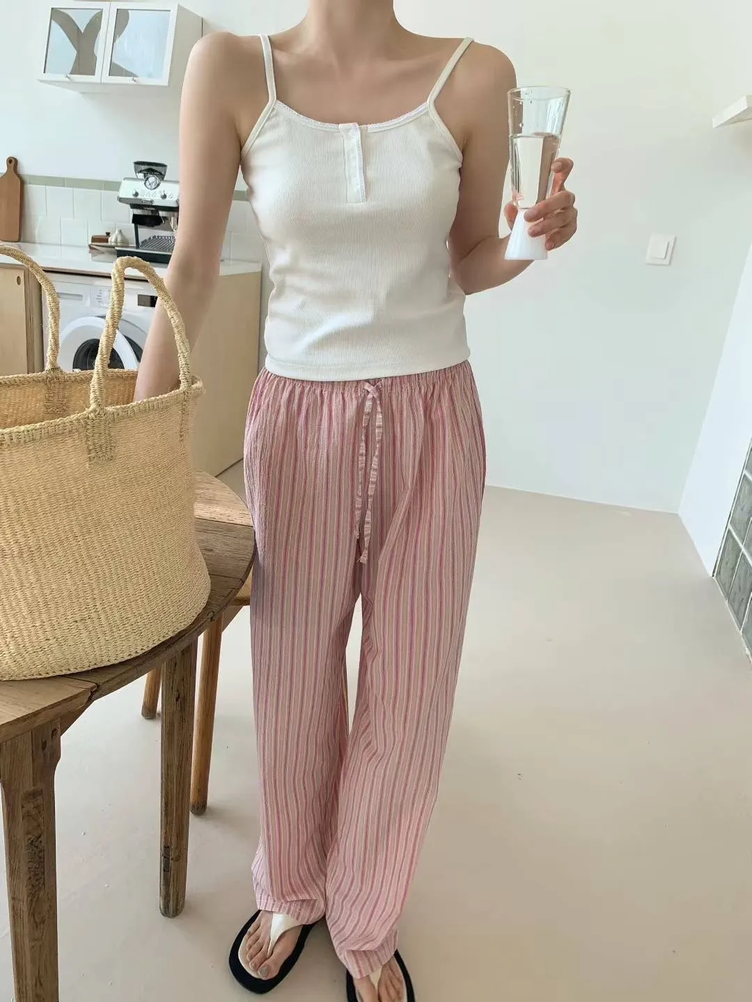 棉 薄款舒適 全腰鬆緊有抽繩 無口袋