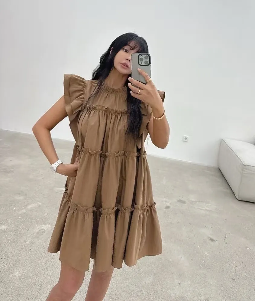 棉 透氣面料 荷葉袖藏肉 空間寬鬆 無口袋 L號友善