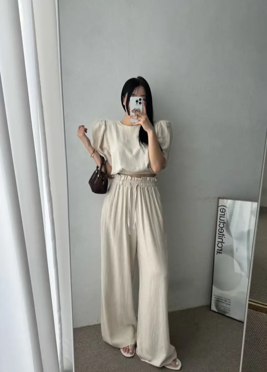 棉+亞麻 全腰鬆緊有抽繩 花苞腰設計 有口袋 L號友善 超敏肌略過