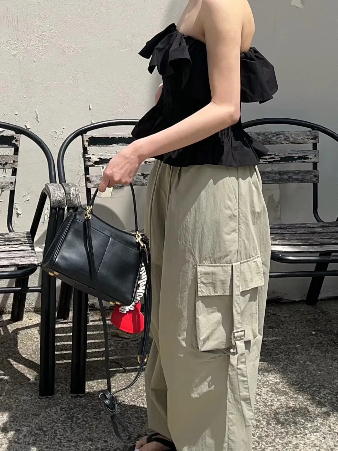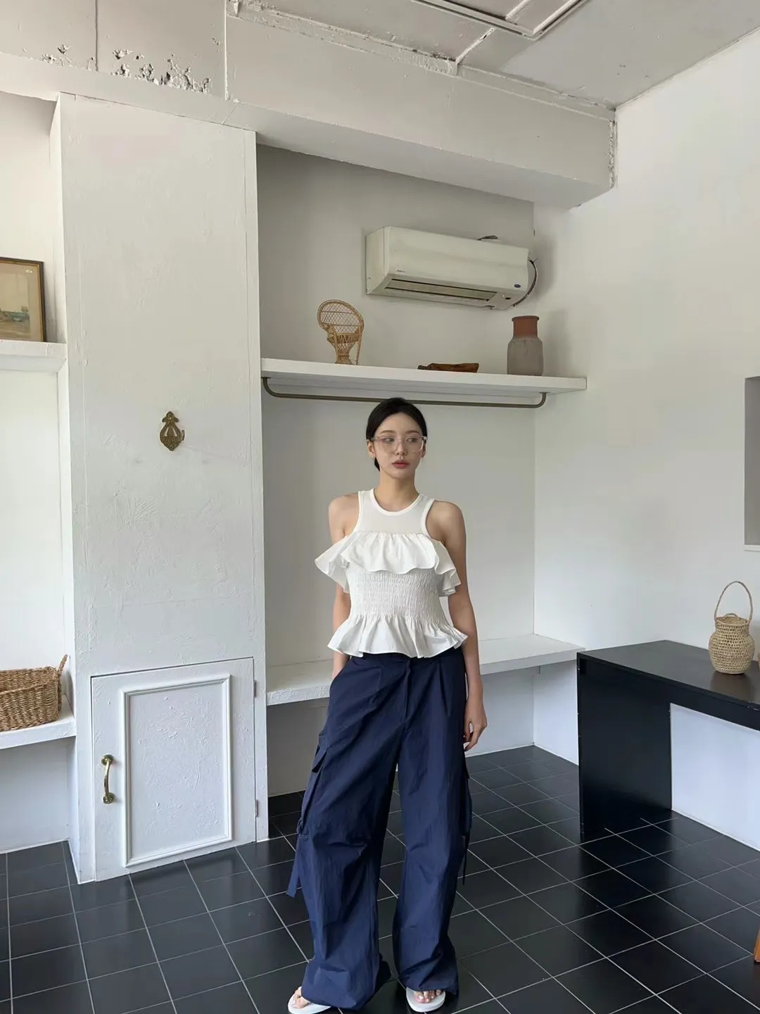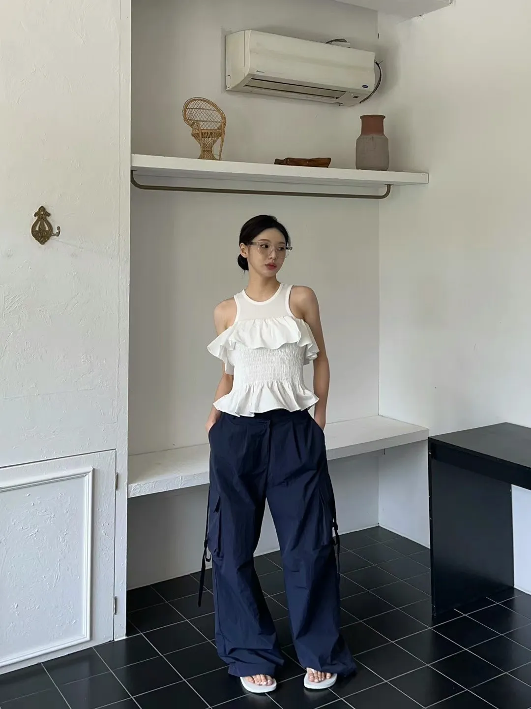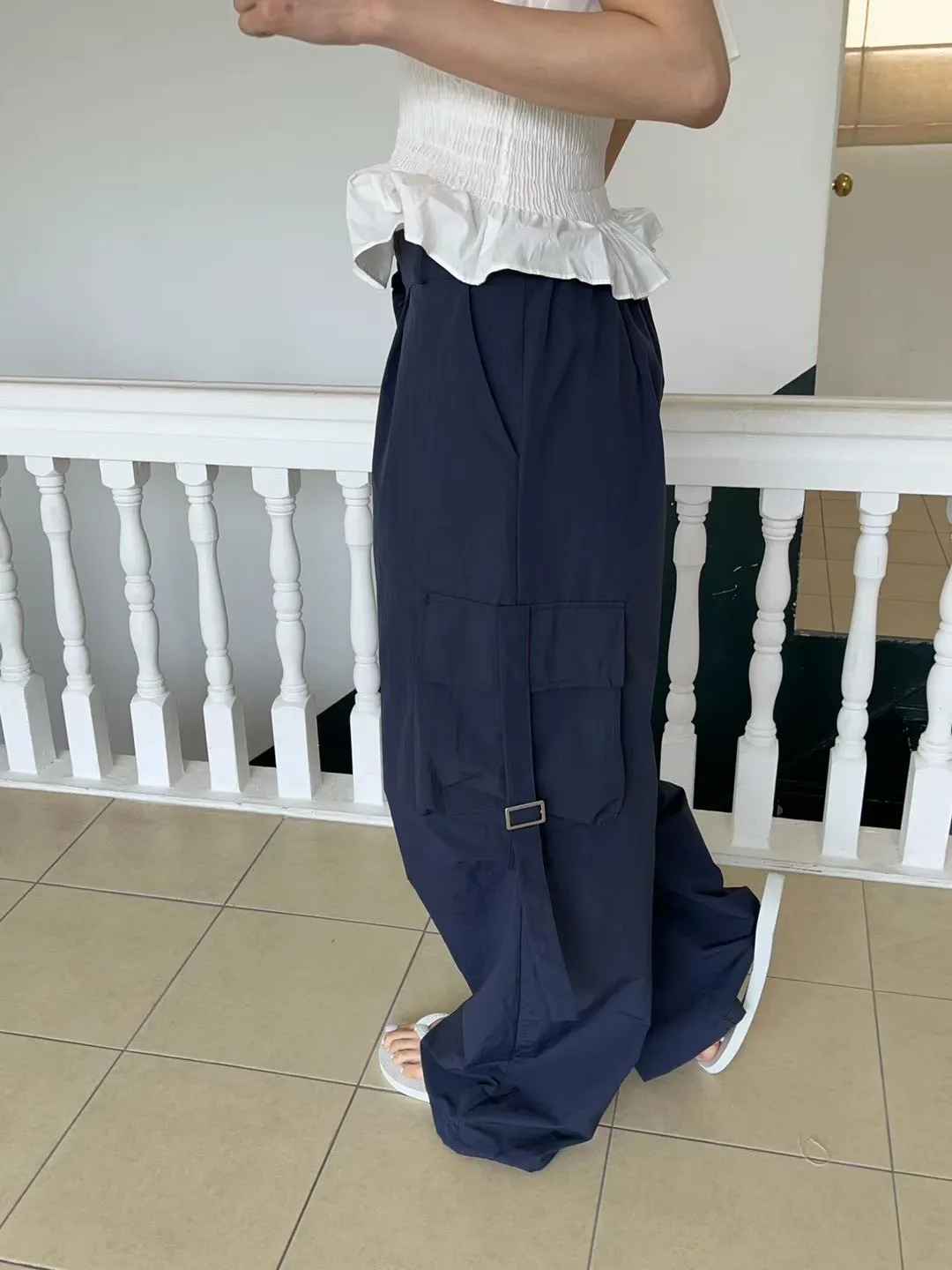 尼龍 全腰鬆緊 褲管抽繩 有口袋