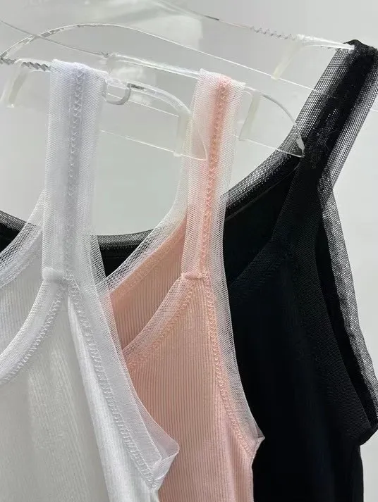 棉+彈力 親膚舒適 質感網紗滾邊 彈性很好 合身不貼身