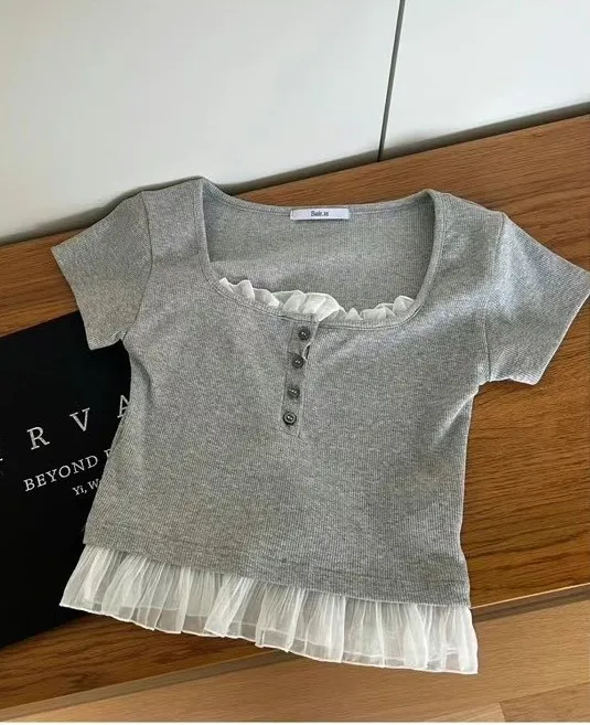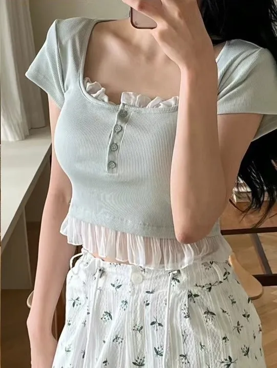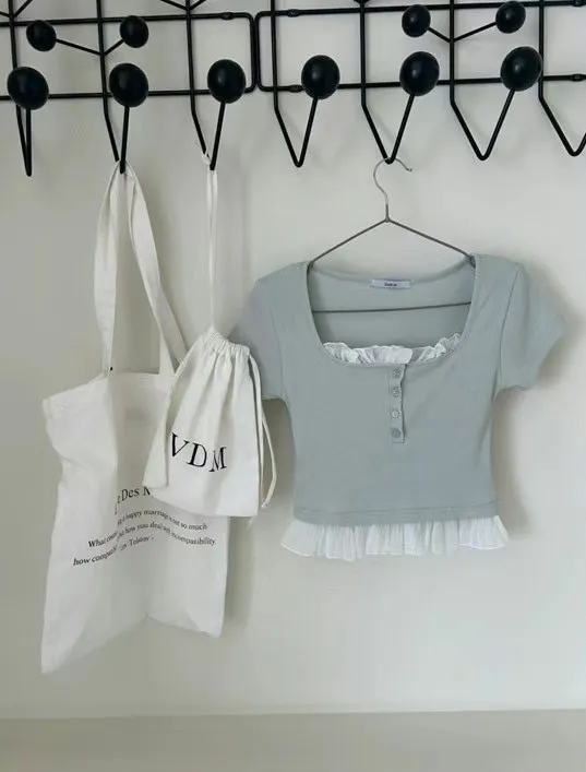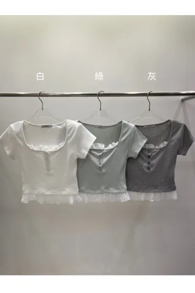 棉 坑條棉+雪紡滾邊 有彈性 薄墊肩可拆 穿到M號 短版好比例