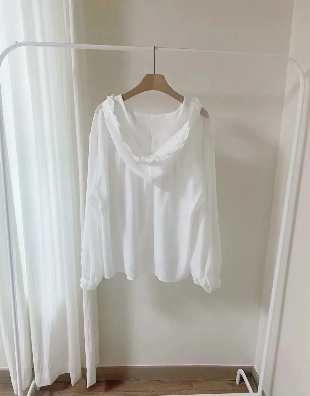 JK208回購款天絲荷葉領柔光連帽上衣外套(原GM161) 白 黃 灰 黑 官網價$1050 線上價$1020
