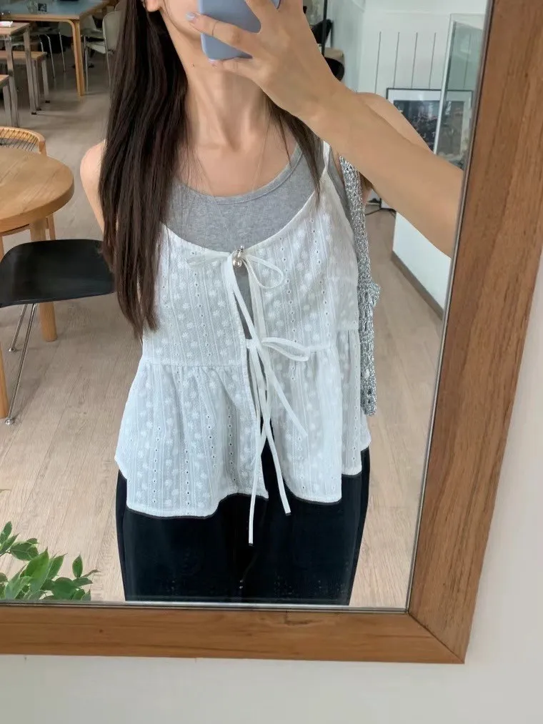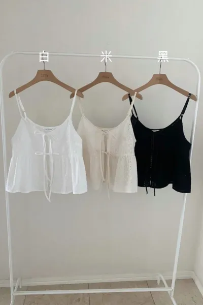 JK217簍空刺繡小花蕾絲雙綁帶上衣 白 米 黑 官網價$780 線上價$750