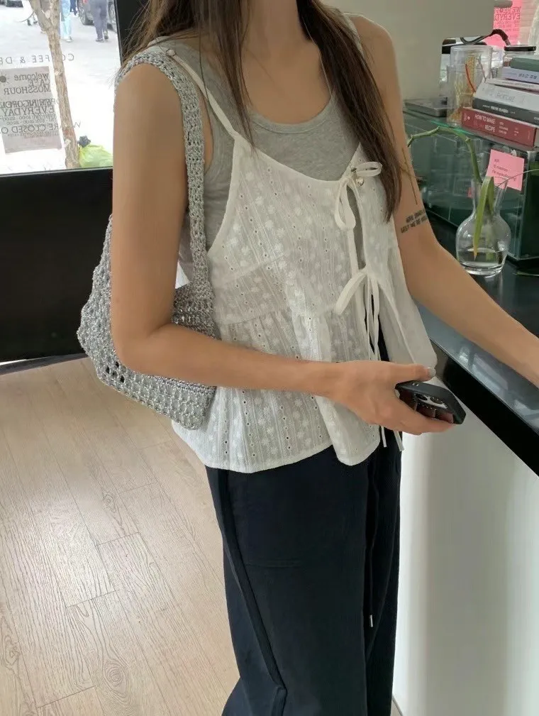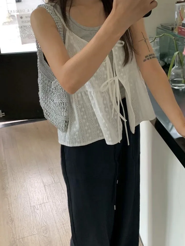 棉 無釦雙綁帶 罩衫式穿搭 肩帶可調 適合夏天