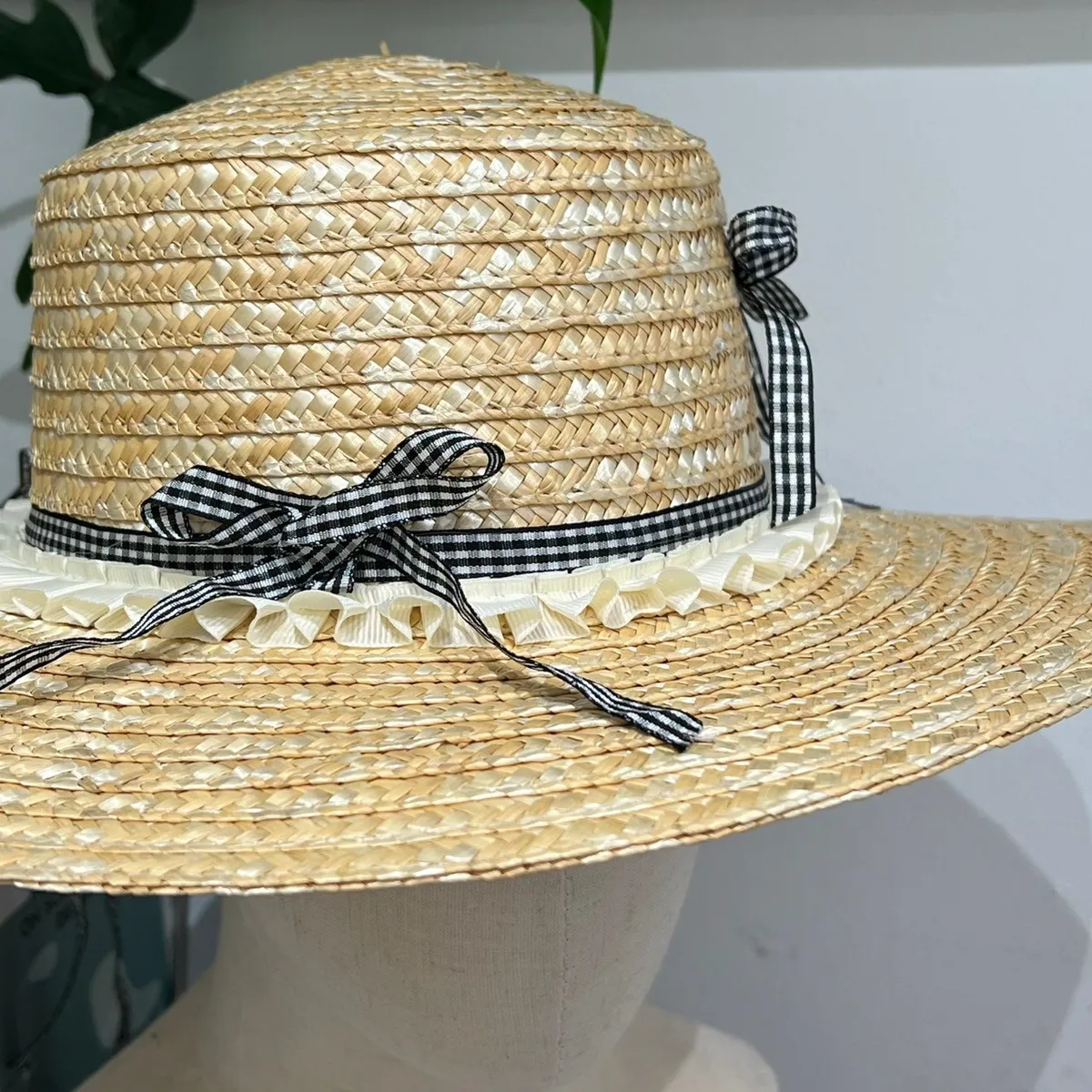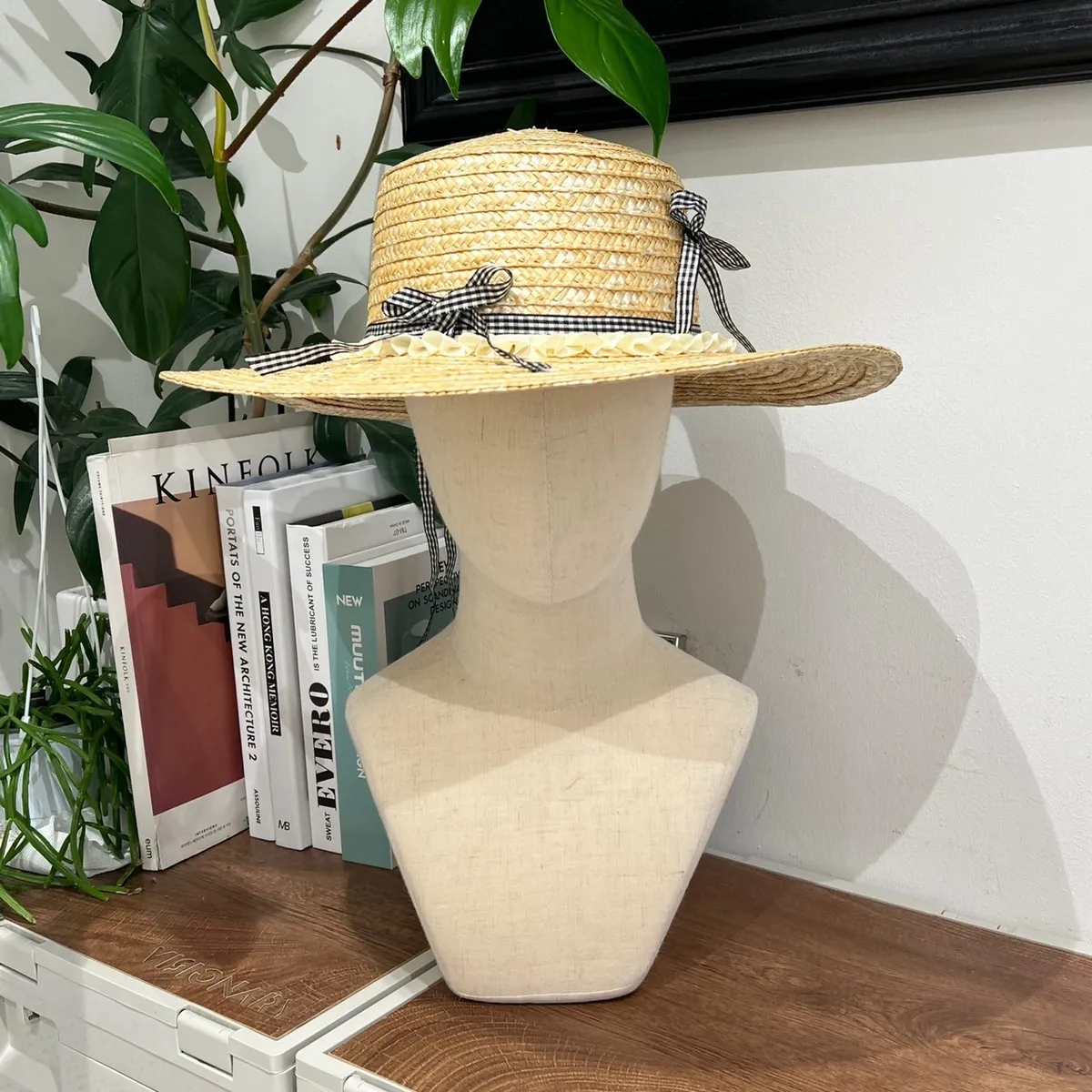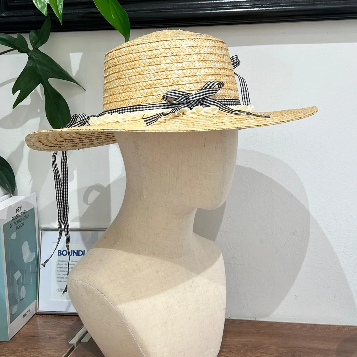 韓製手工 格紋蝴蝶結緞帶 可調頭圍 paper材質