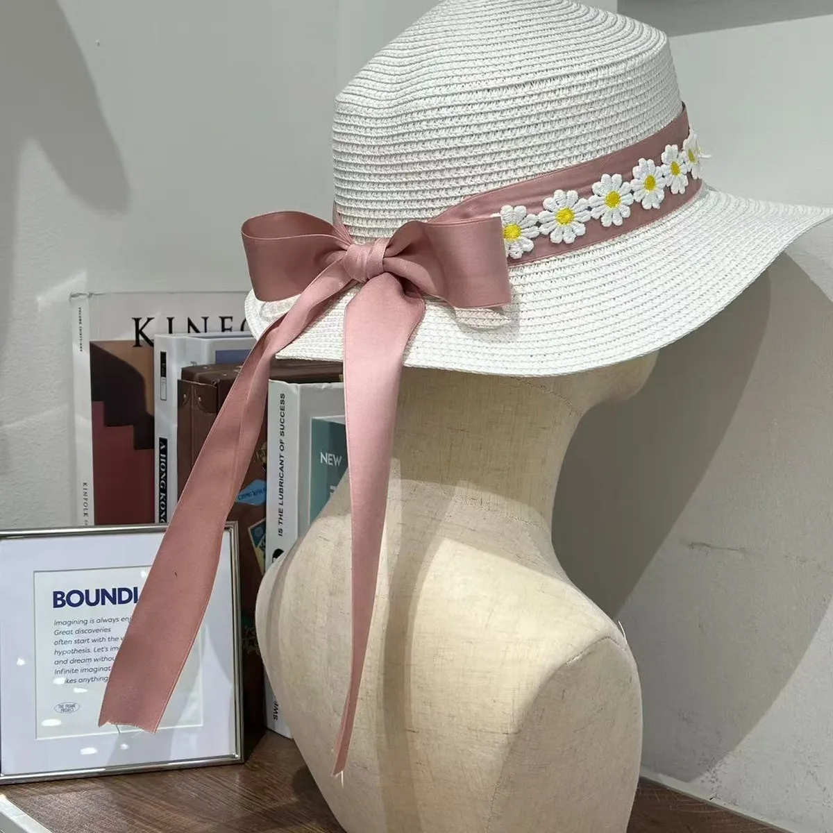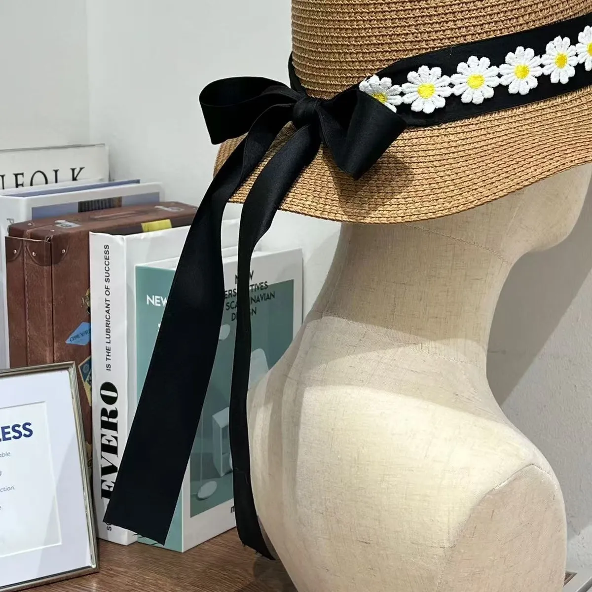 鈎織布蕾絲小雛菊 飄逸緞帶蝴蝶結 可調頭圍 材質paper