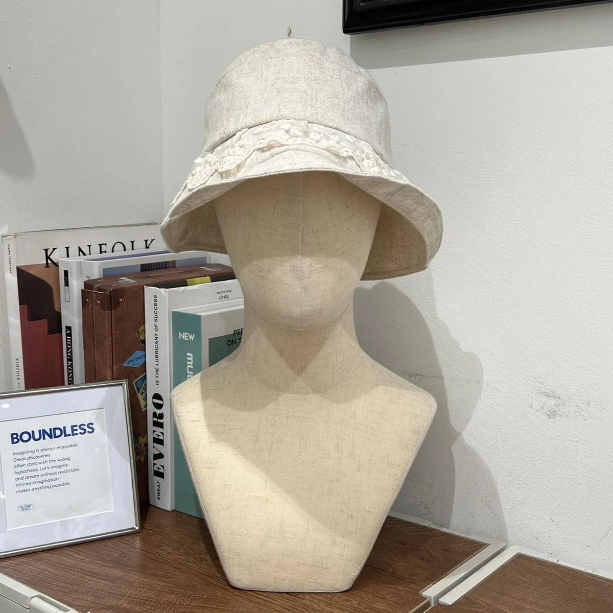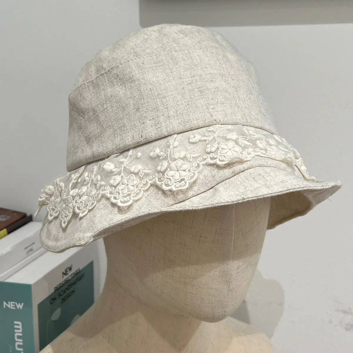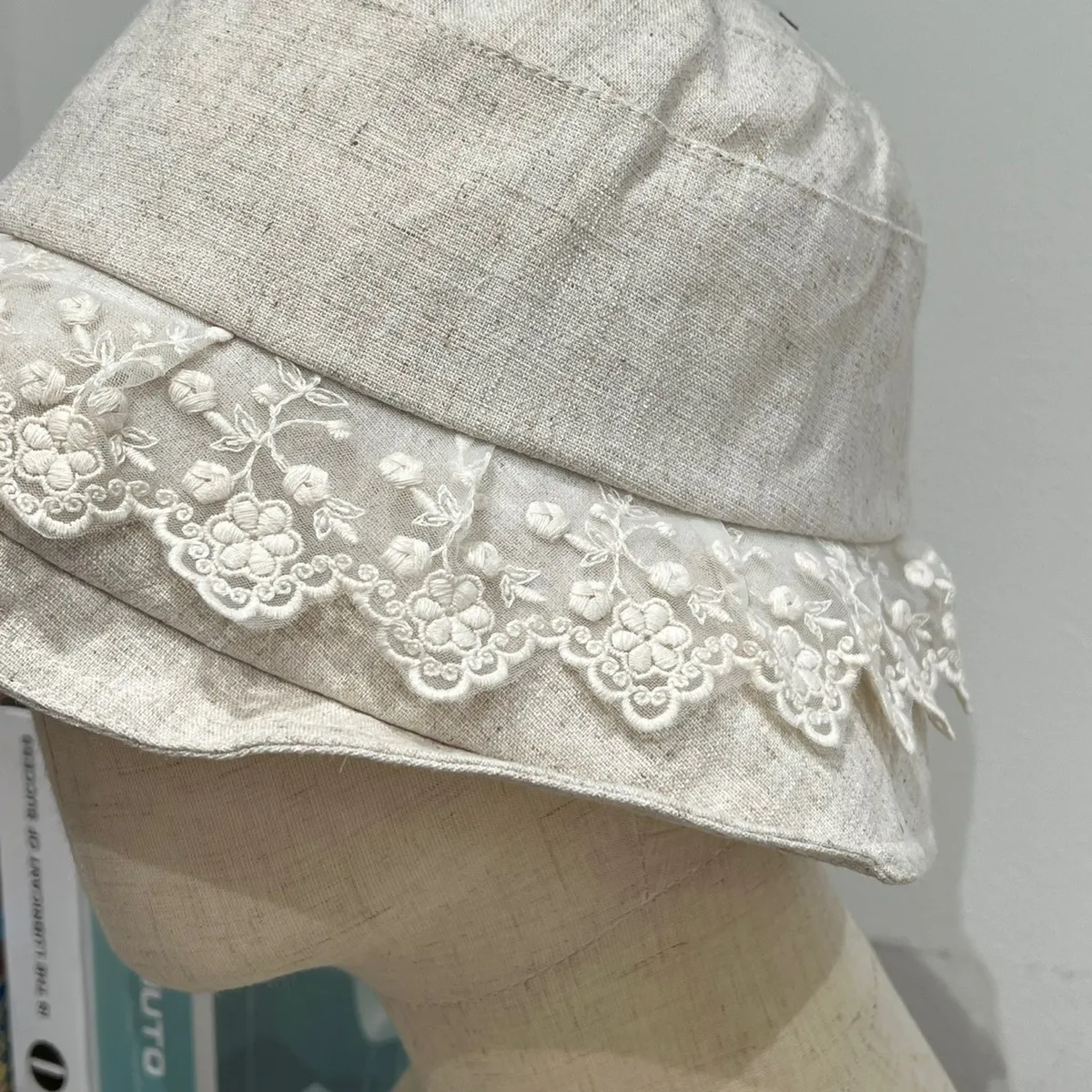 棉+亞麻 透氣不悶熱 網紗刺繡花朵 可調頭圍 適合夏天