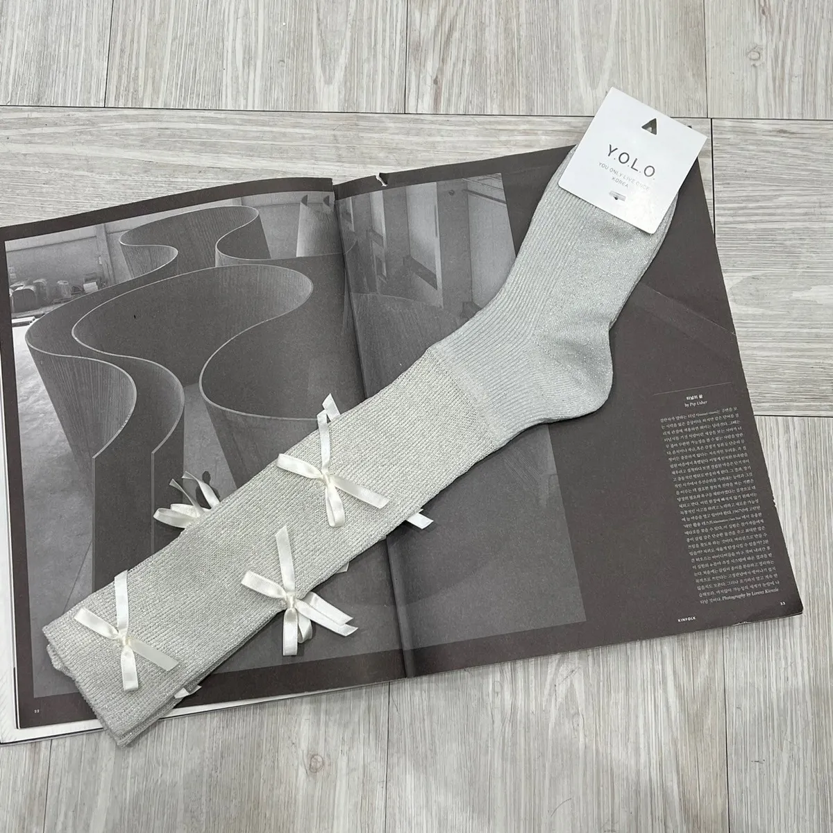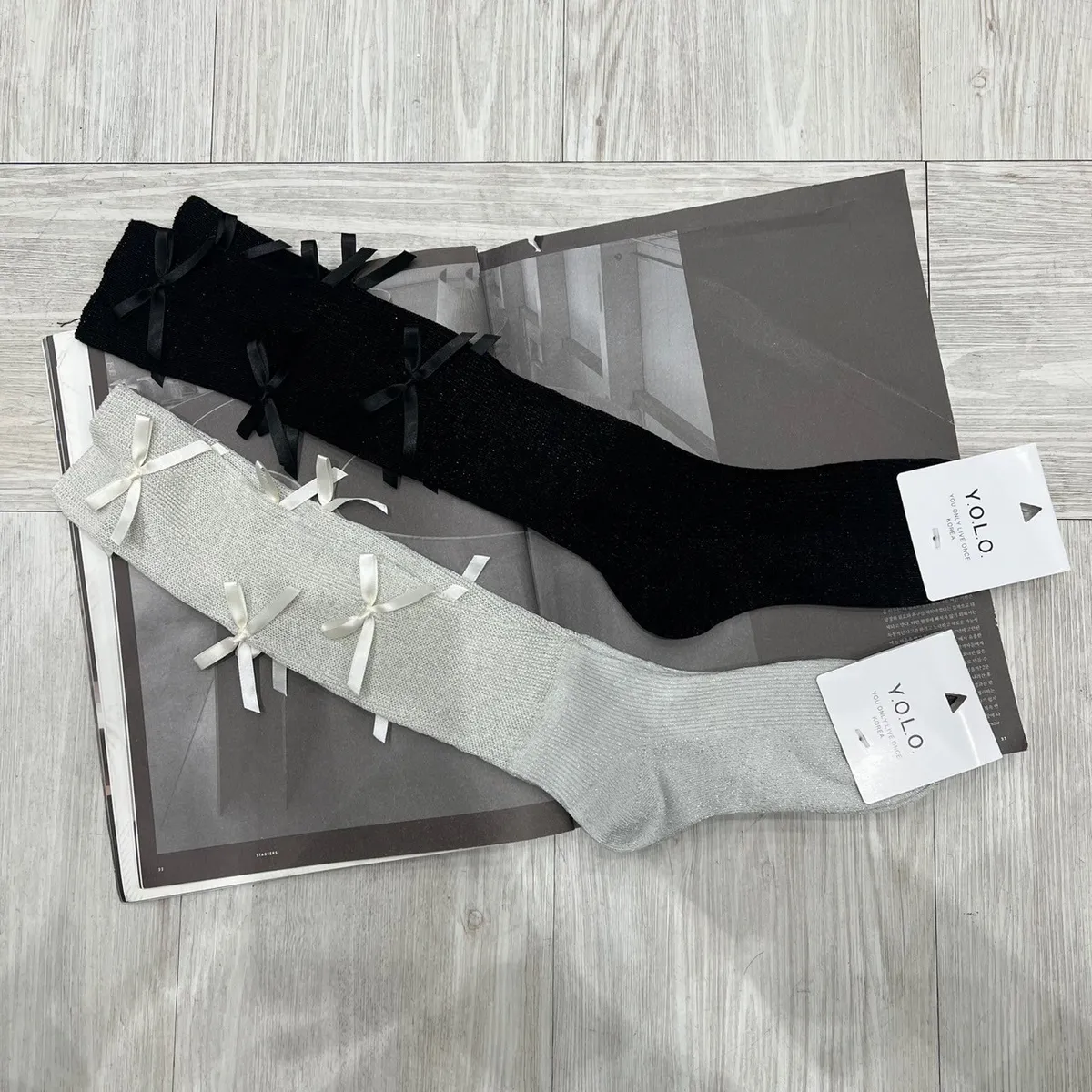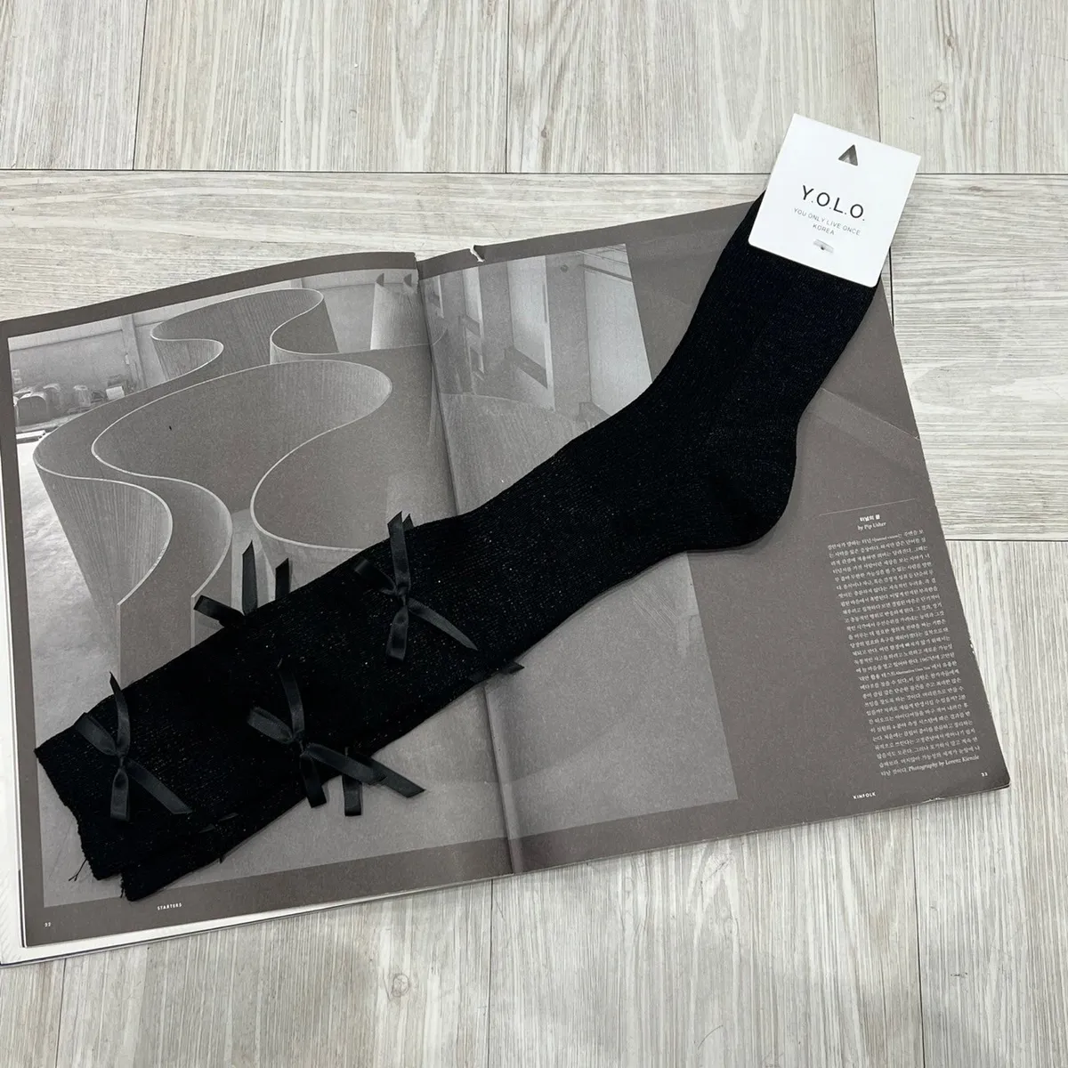 JK270蝴蝶結長襪 米 黑 官網價$170 線上價$140