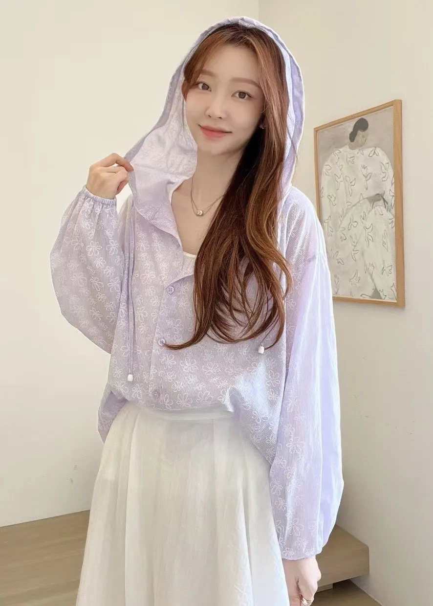 天絲+尼龍+聚酯 薄款透氣 柔軟涼感排釦穿脫 連帽設計 夏天防曬 XL友善