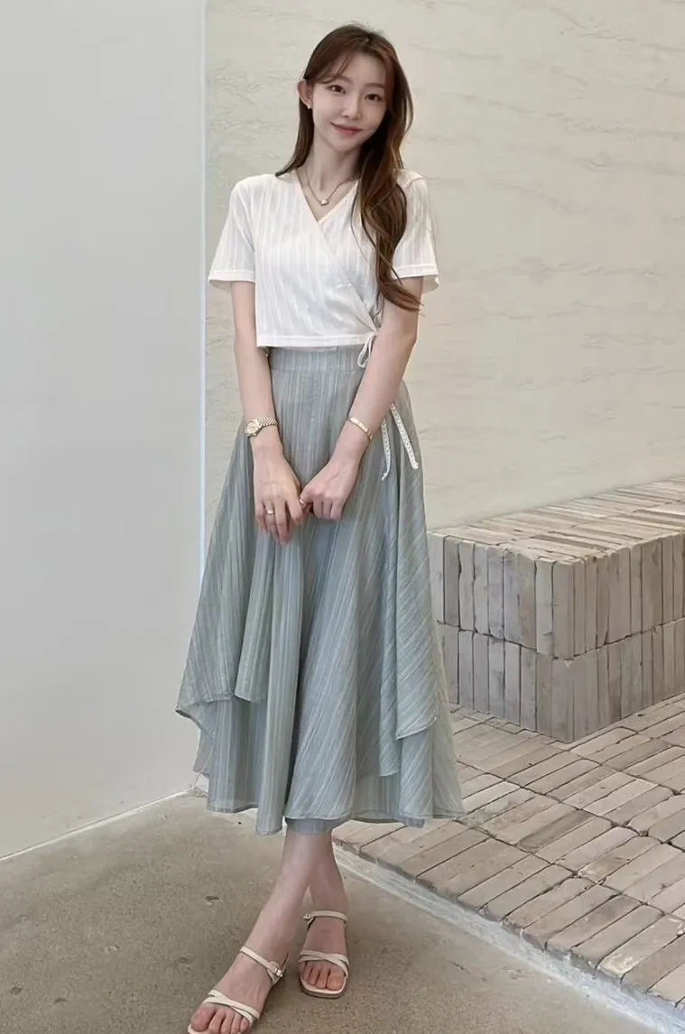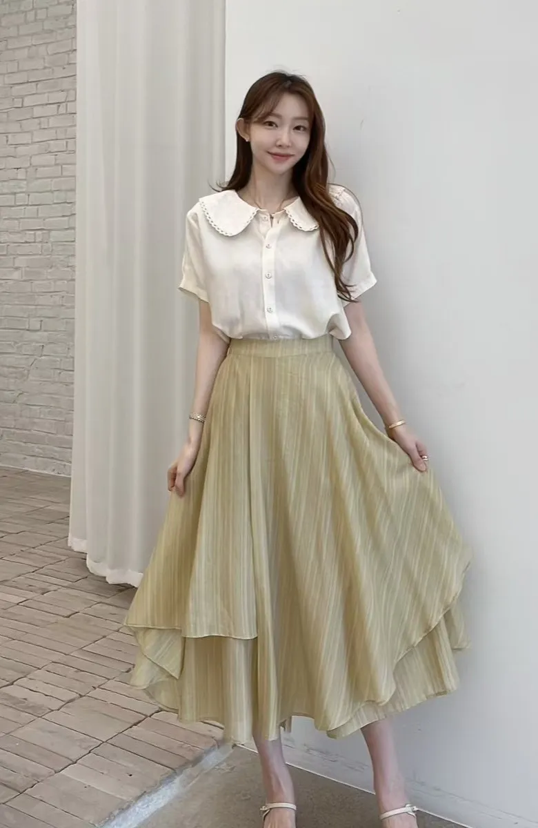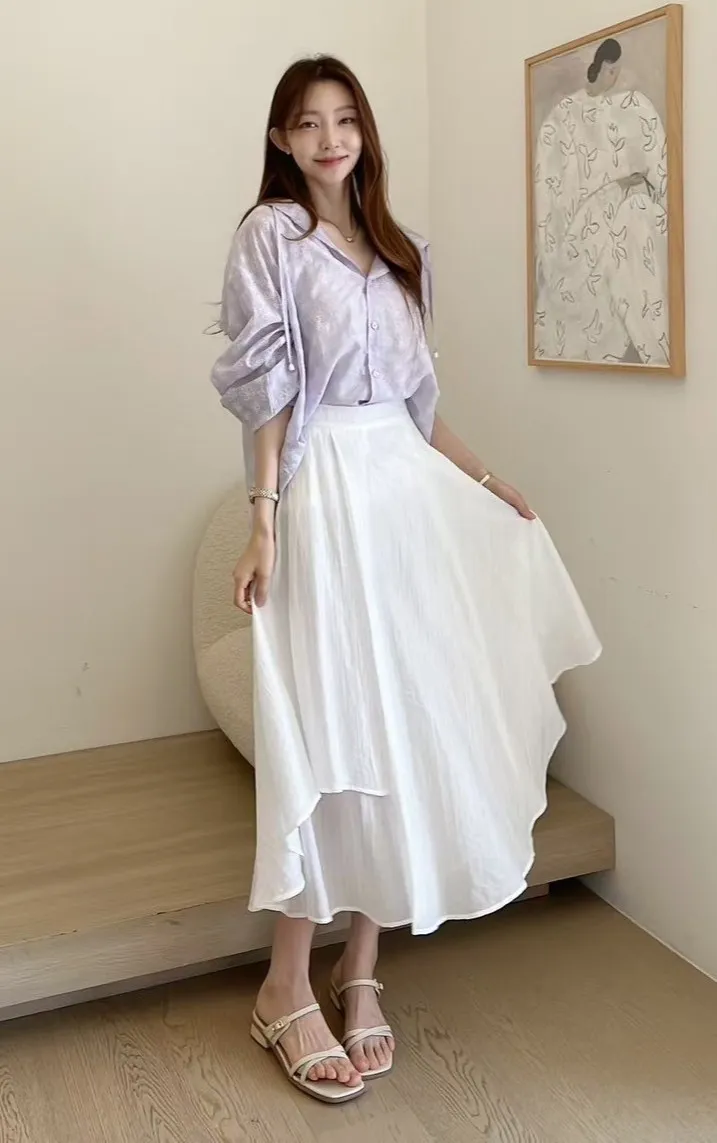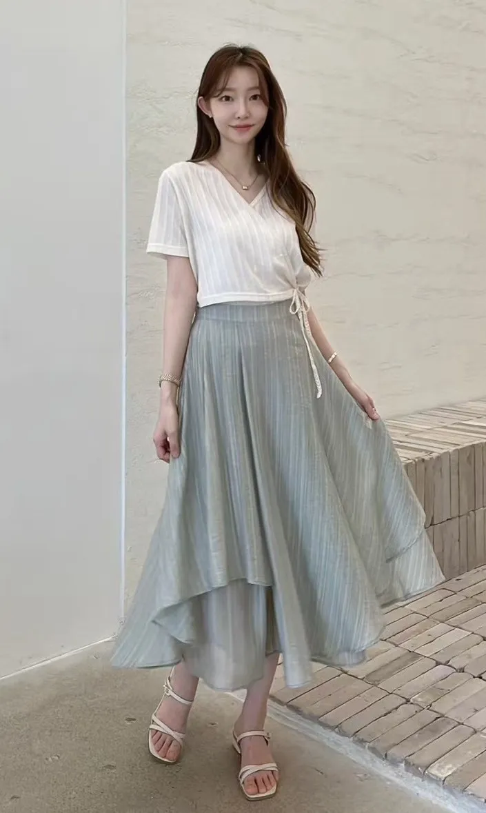 天絲+聚酯 極輕盈彷彿沒穿 涼感舒適 是褲裙 側拉鍊 後腰鬆緊