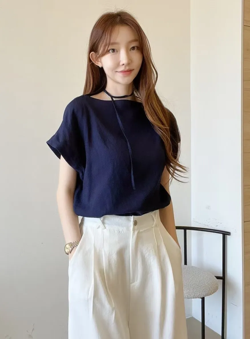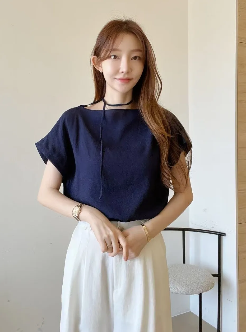 人造絲+聚酯 推薦款 細頸綁帶 柔軟涼感 夏日清爽 可兩面穿 自然美感垂墜