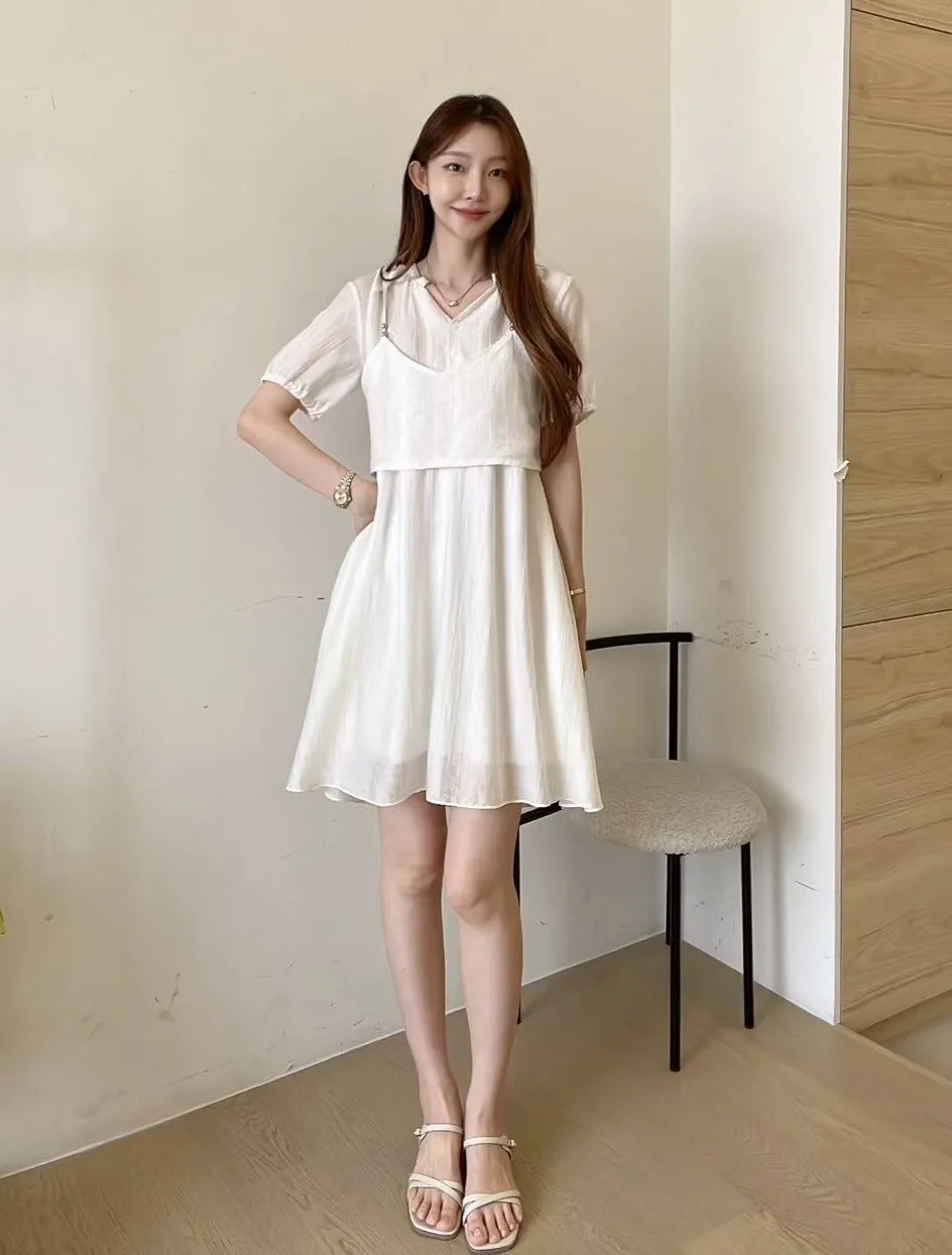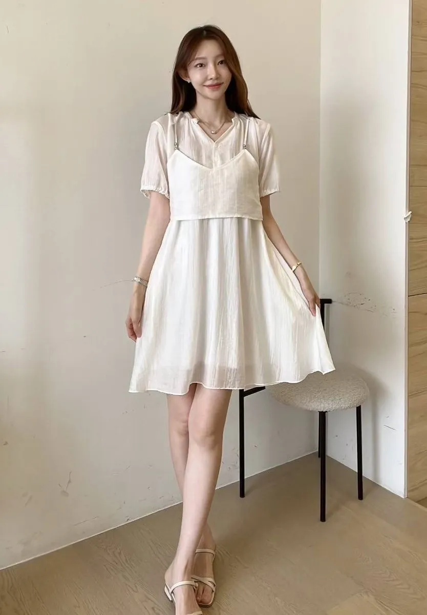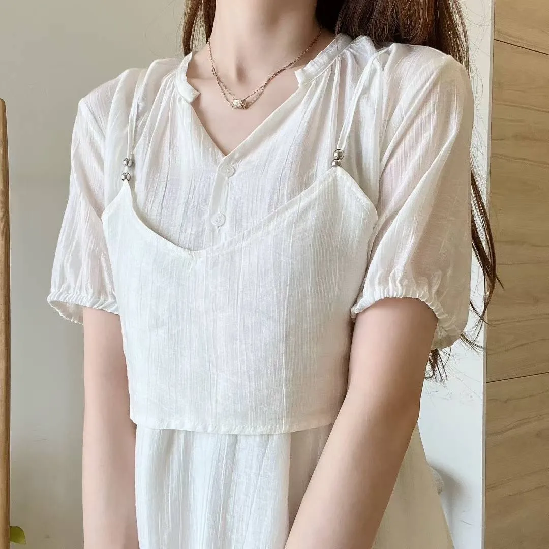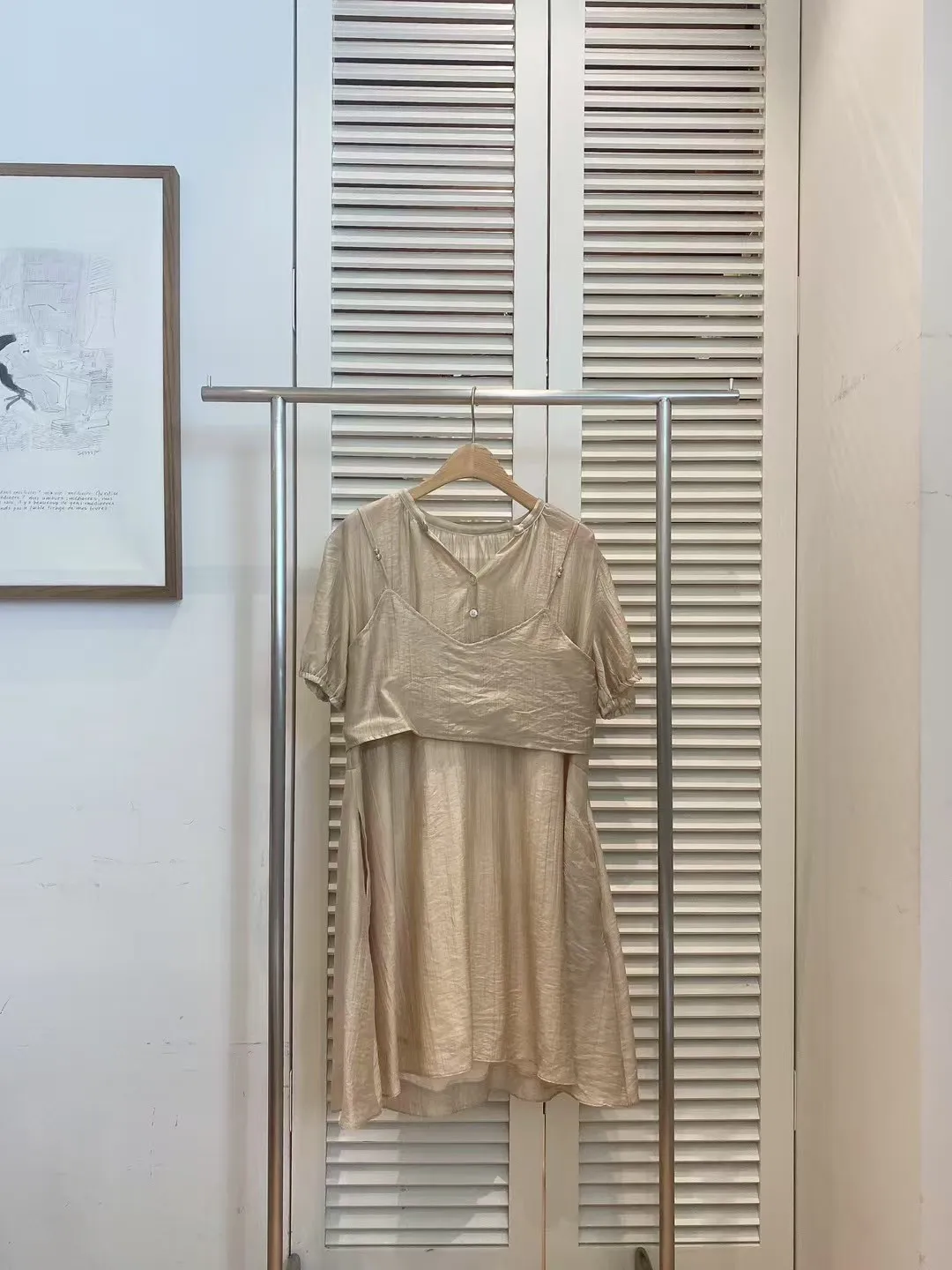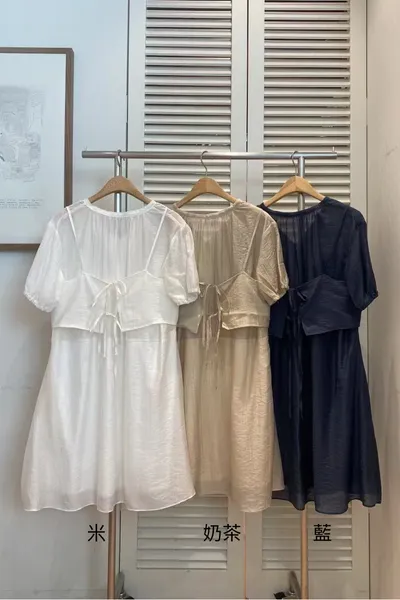 人造絲+聚酯 細緻面料 柔軟薄款 兩件可拆開 有內裡 背心肩帶可調