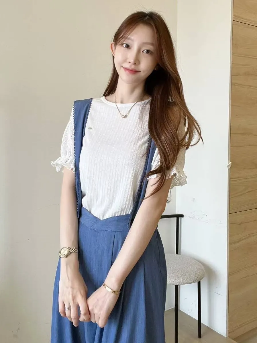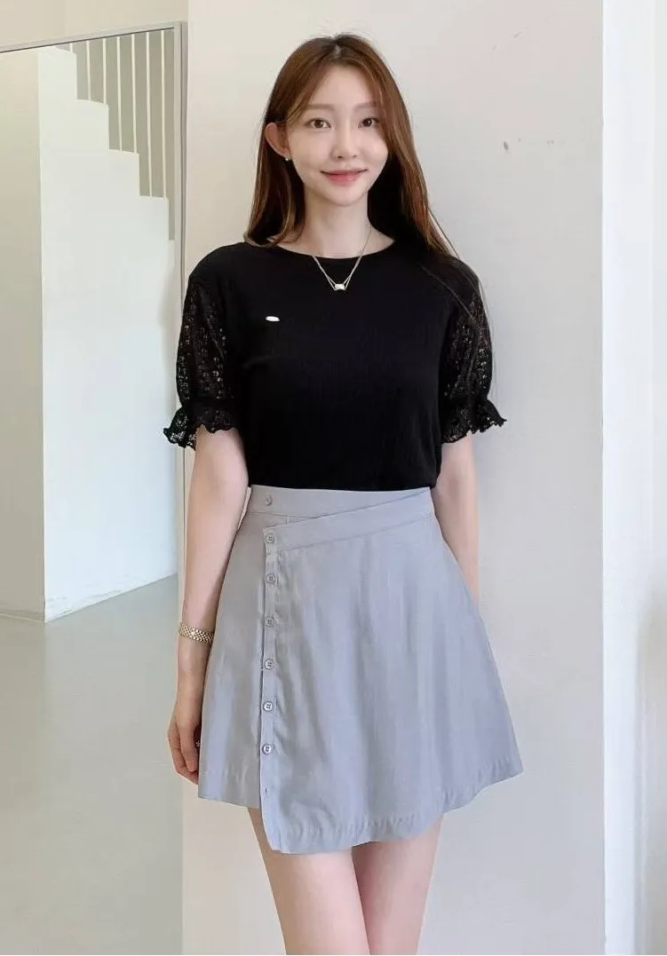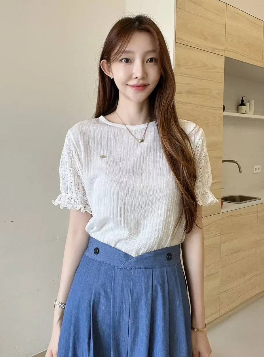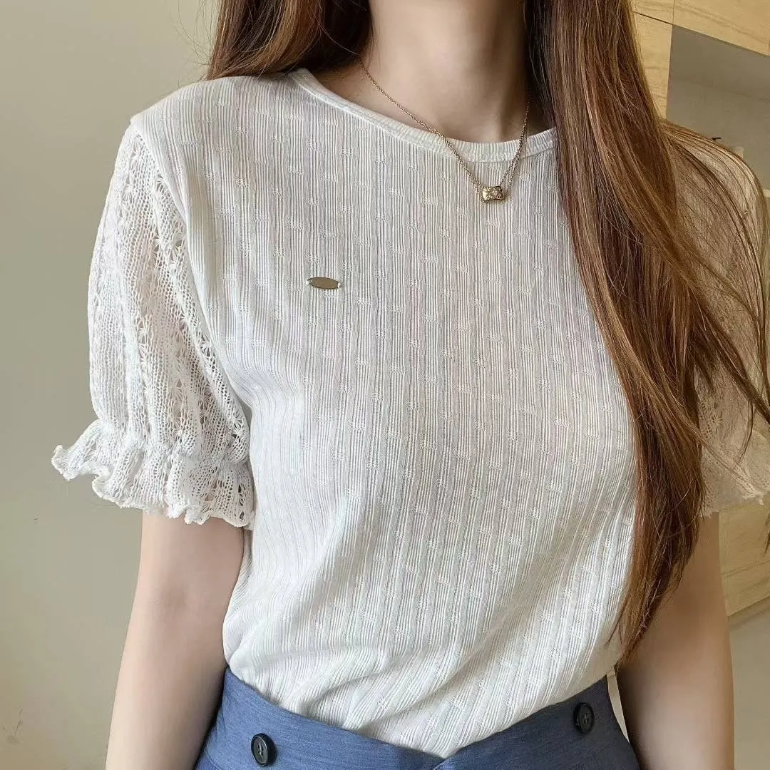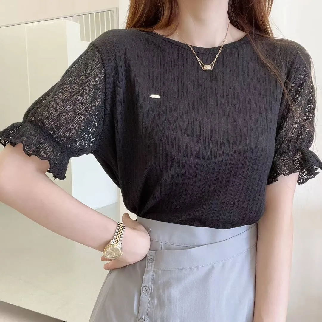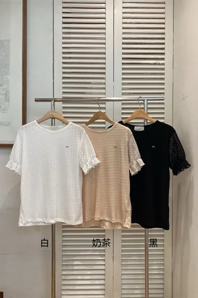棉+人造絲 柔軟舒適 荷葉蕾絲袖 超大彈性 袖口彈力 胸前小標