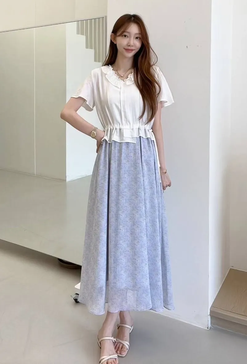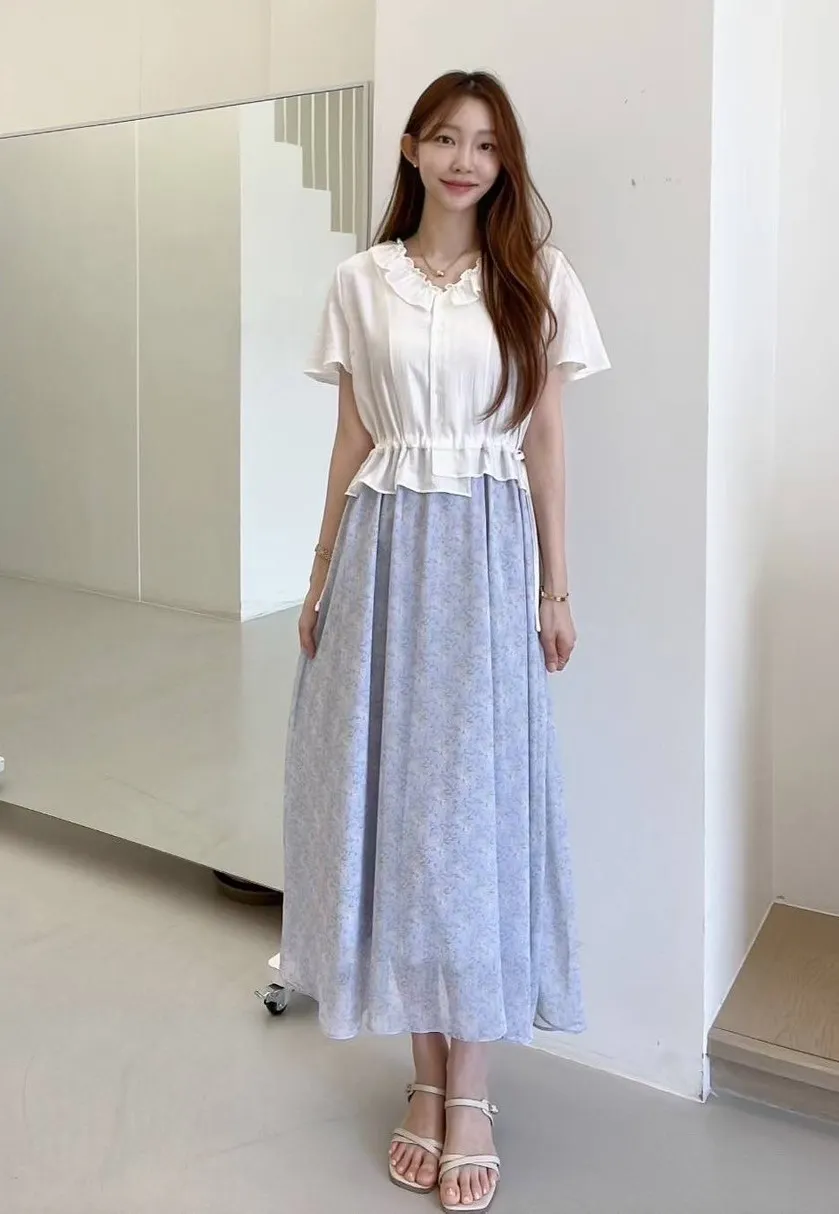雪紡+人造絲+尼龍 細緻光澤感 輕盈舒適 裙襬小花 腰腹超大彈性 兩件不可拆