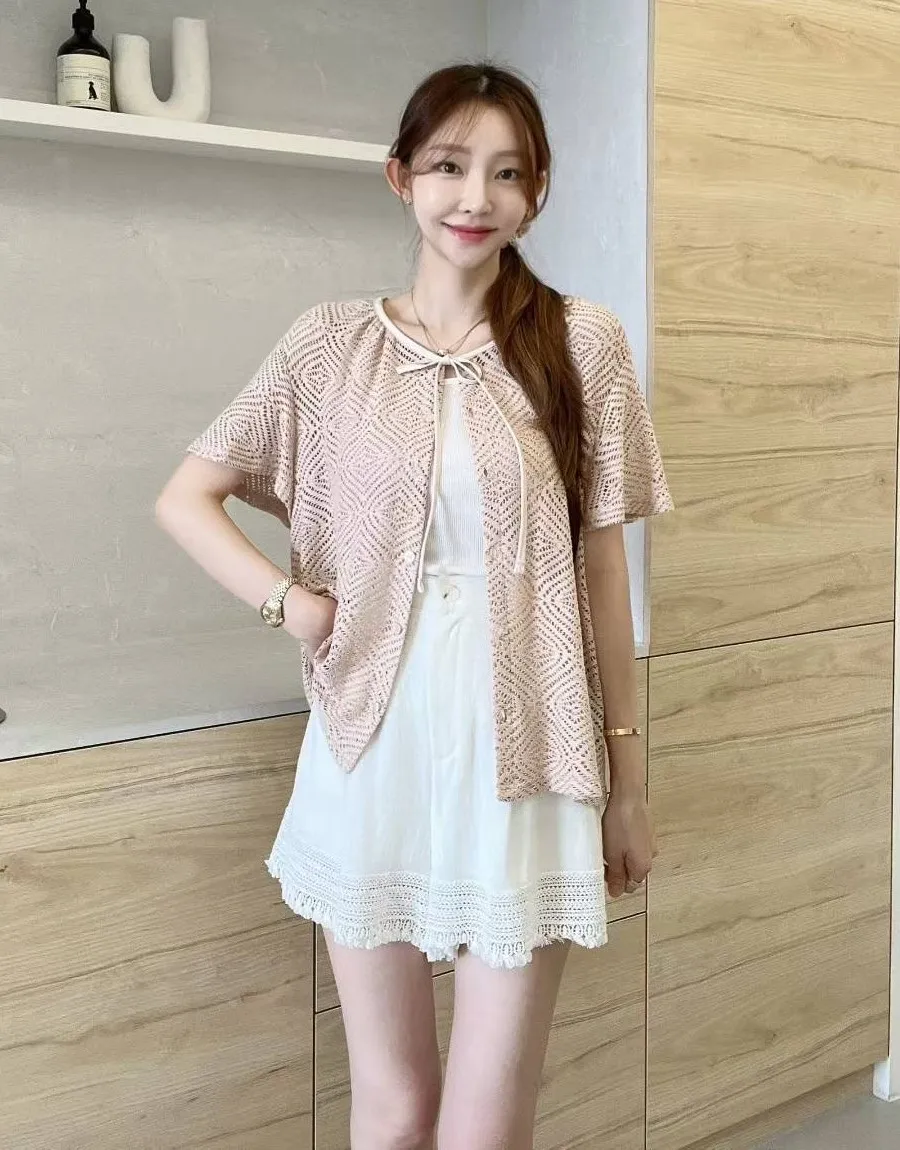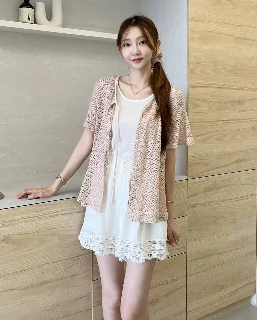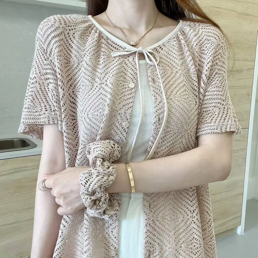 人造絲+尼龍+彈力 薄款簍空 可上衣可罩衫 排釦穿脫 清爽夏天穿搭