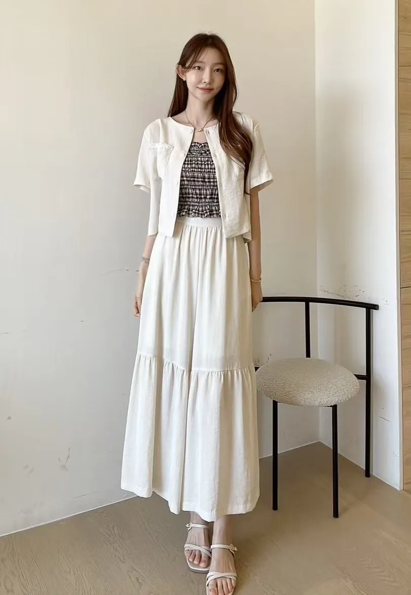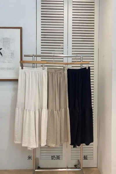 人造絲+尼龍+亞麻 側拉鍊腰腰鬆 有口袋 看起來像裙子 是褲子唷