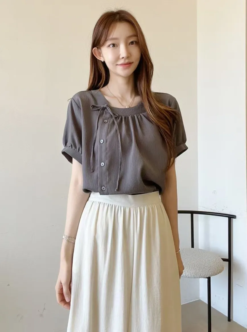 JK321氣質側胸綁帶排釦上衣 白 米 墨 官網價$1030 永恆甜甜價$1000