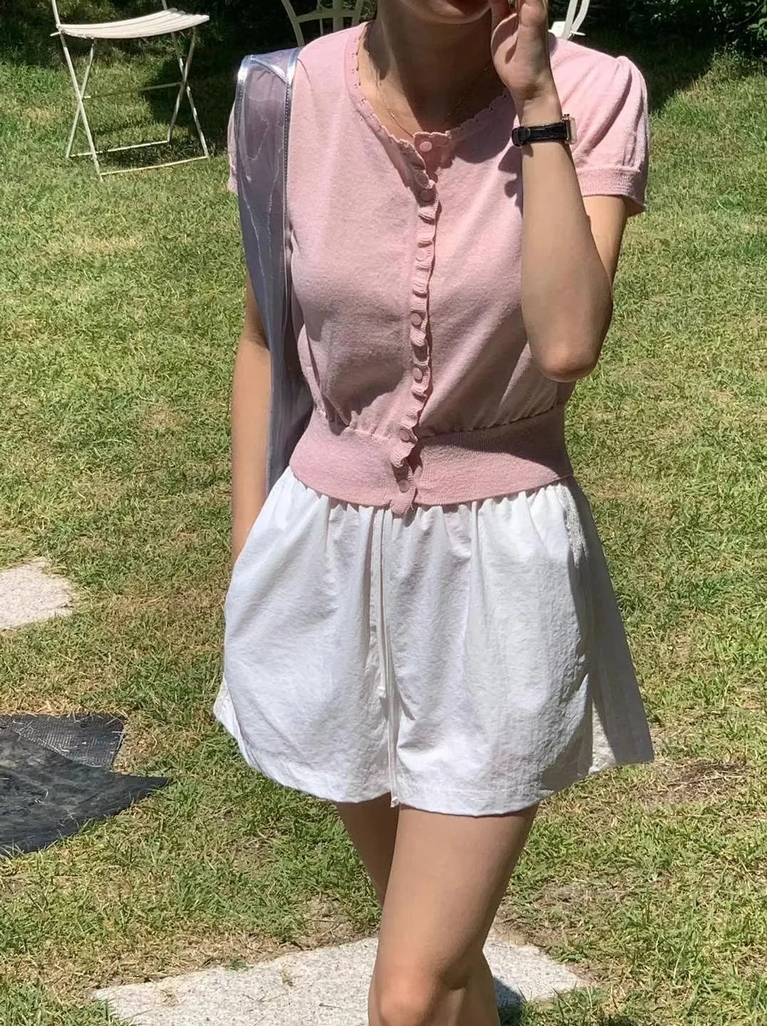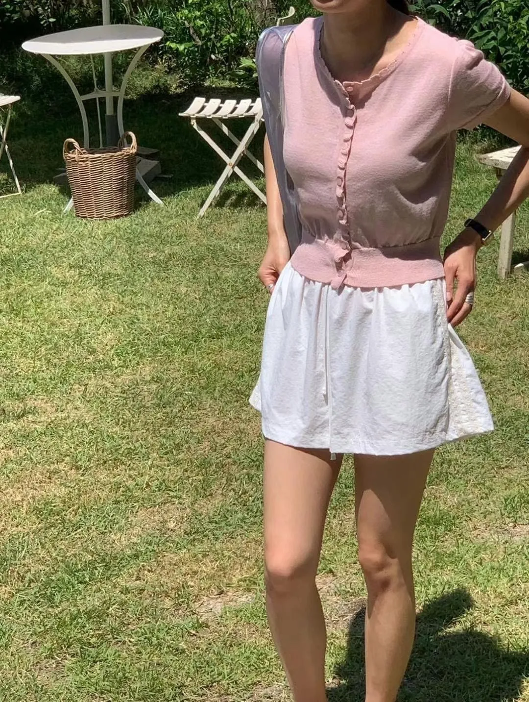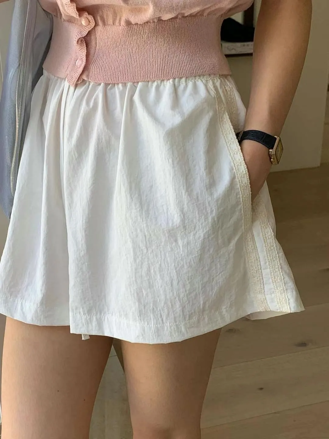棉,側面一條蕾絲 有口袋 全腰鬆緊 薄款微透