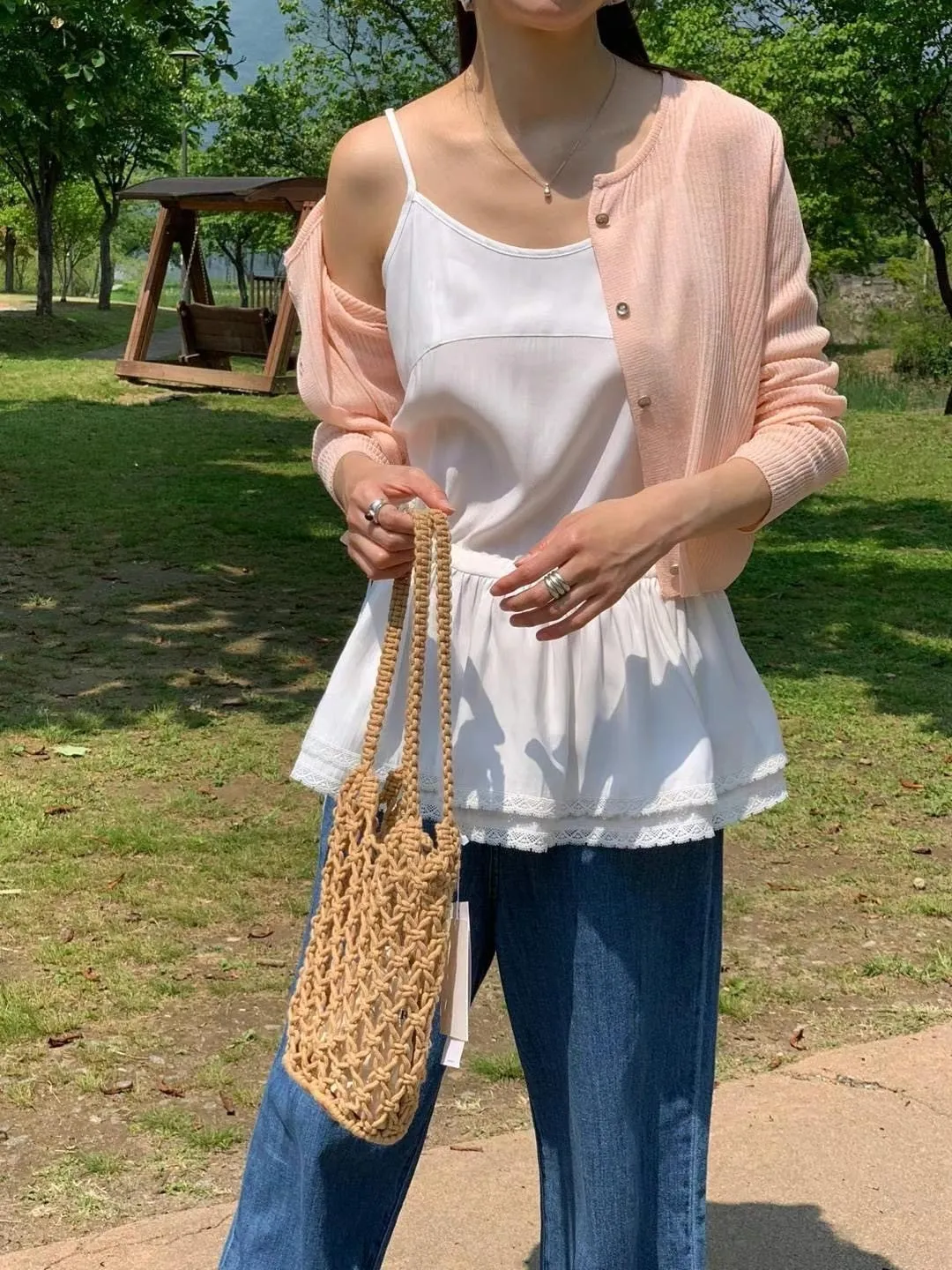 雪紡+縲縈,肩帶可調 雙層蕾絲下擺