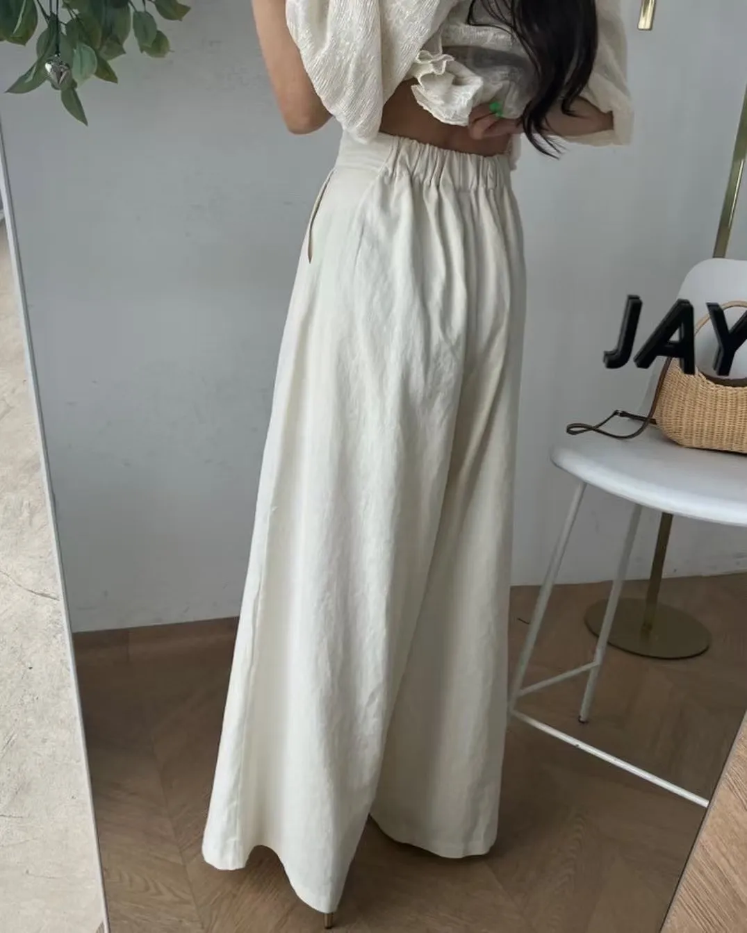 棉+亞麻,側拉鍊後腰鬆緊 褲檔舒適 有口袋有內裡 寬鬆顯腿長 夏日清爽