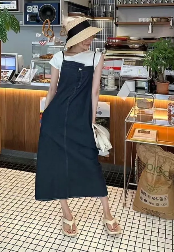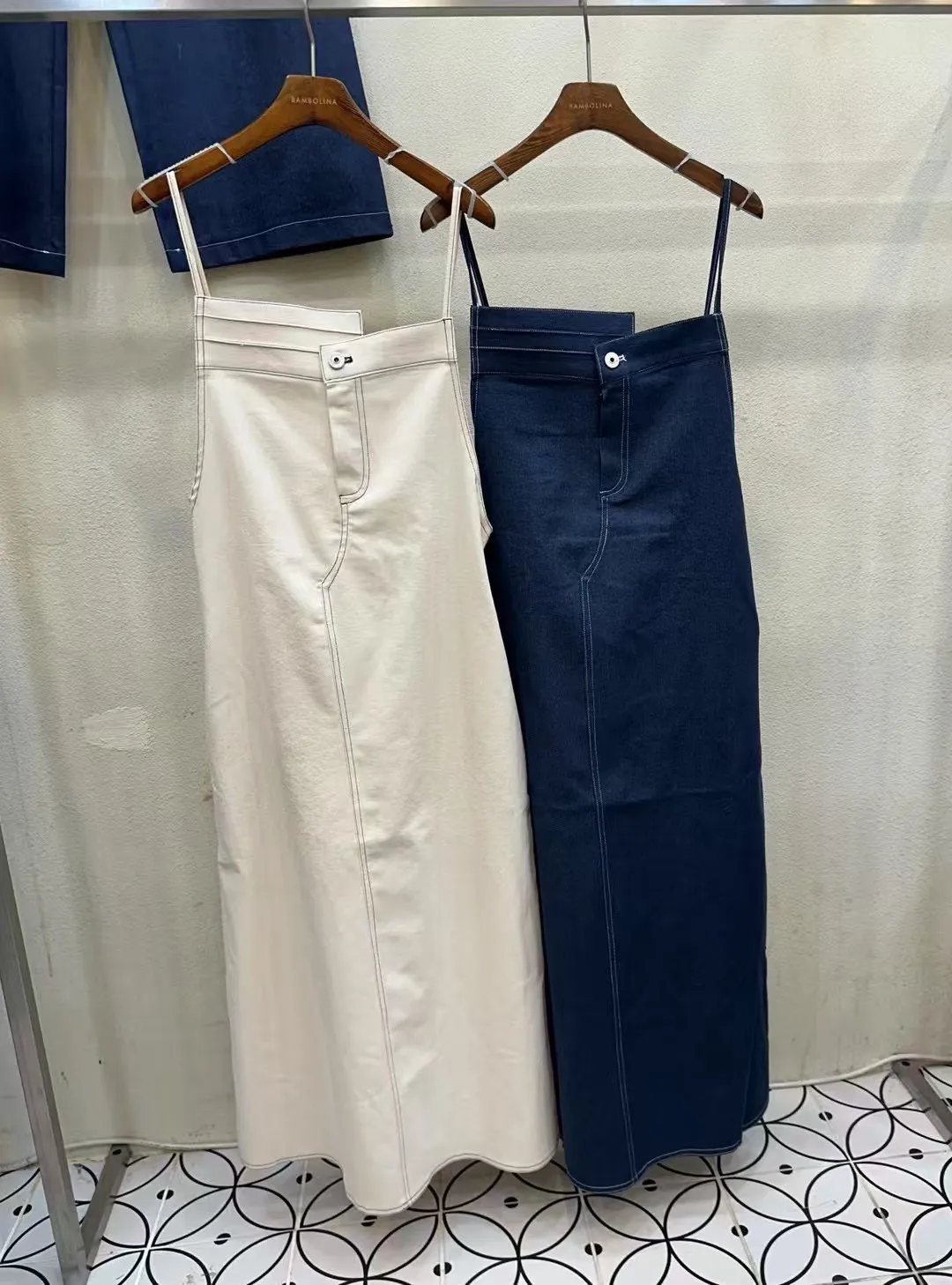 棉 胸前單釦不對稱設計 肩帶可調 腰有鬆緊 跳色車線