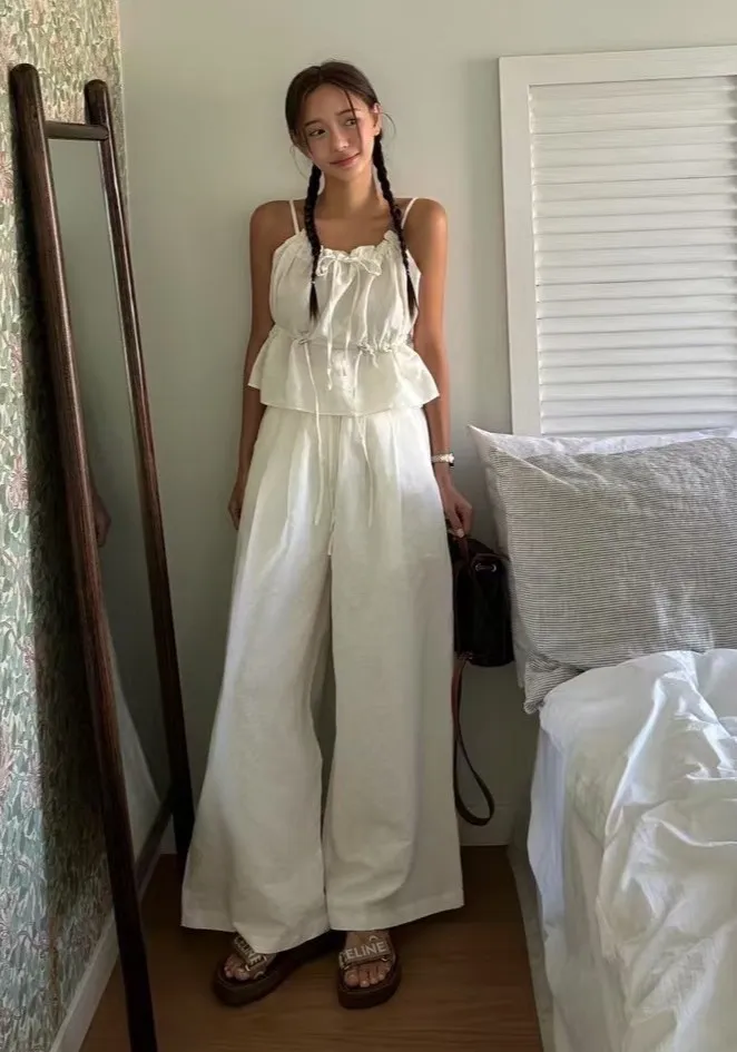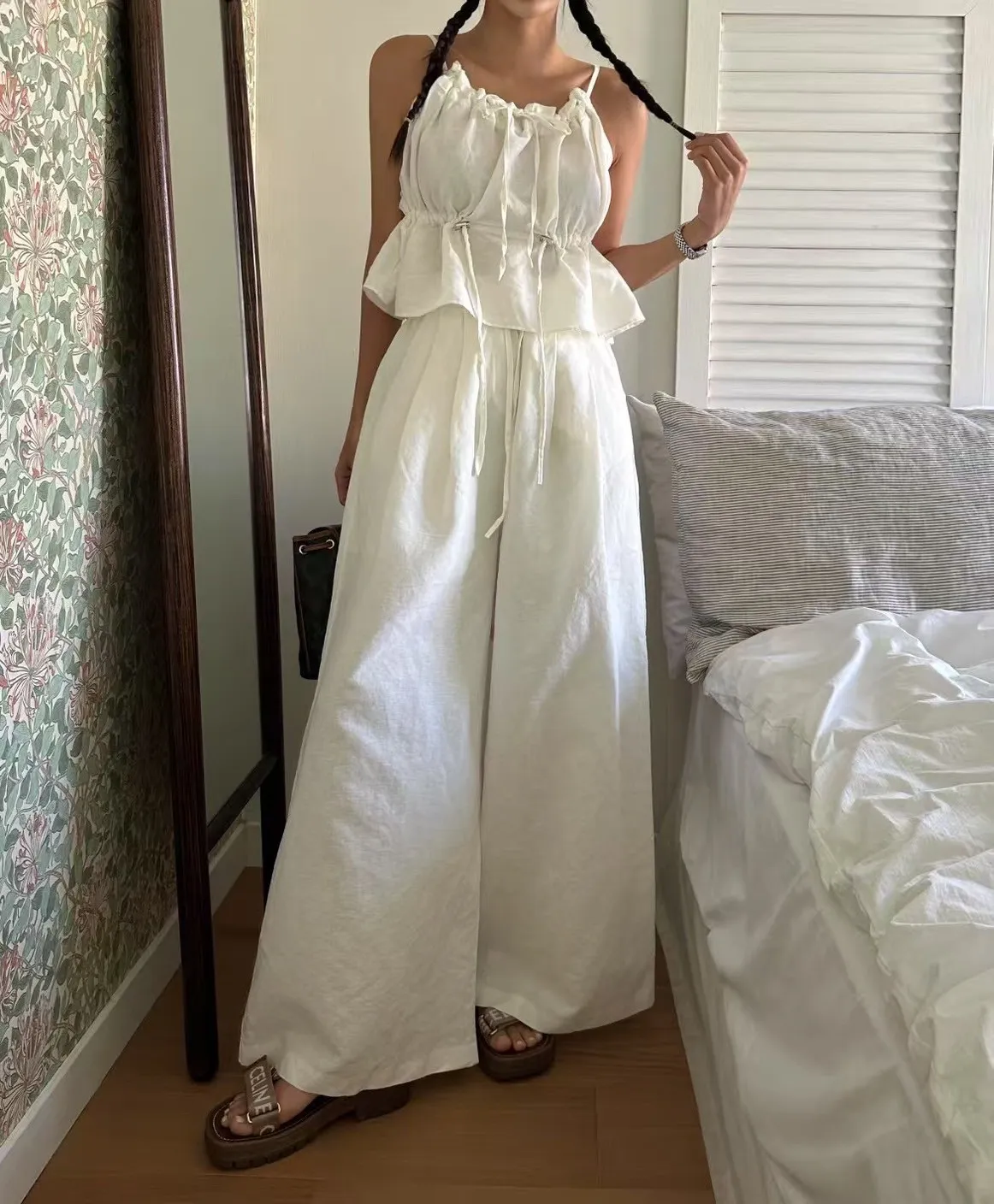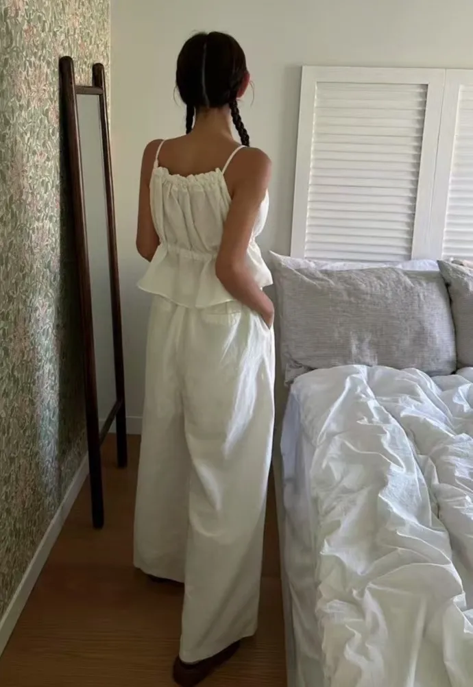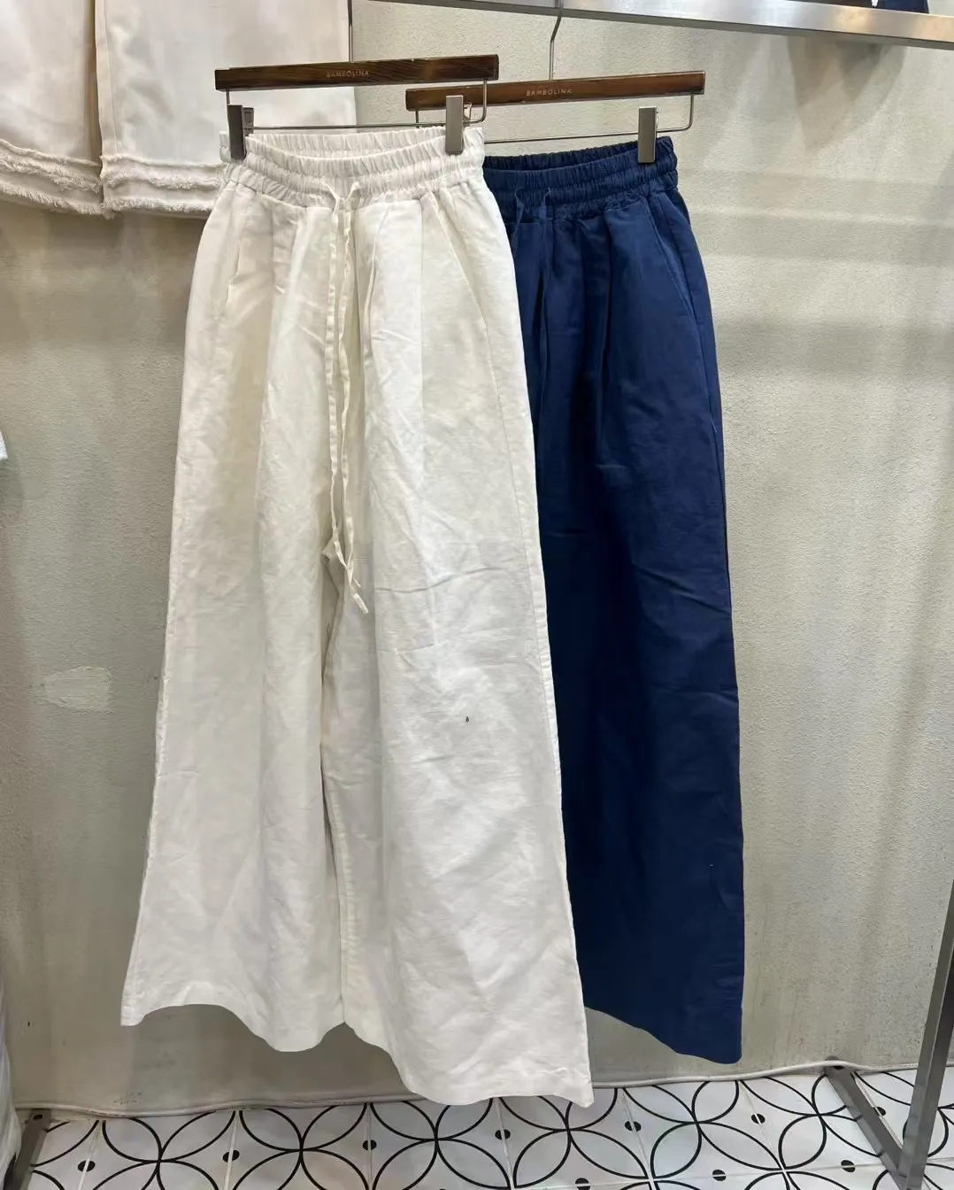 棉+亞麻,有口袋 全腰鬆緊有抽繩 高腰版型
