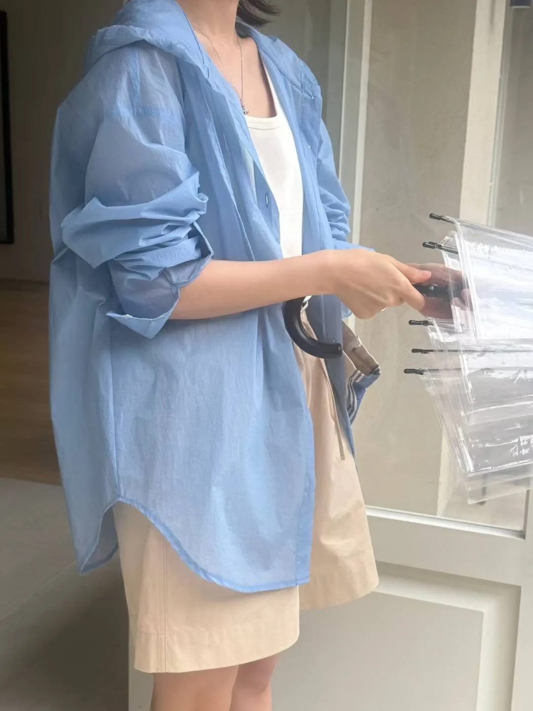 JK440高級宣紙尼龍透光連帽外套 白 藍 灰 官網價$1460 線上價$1430