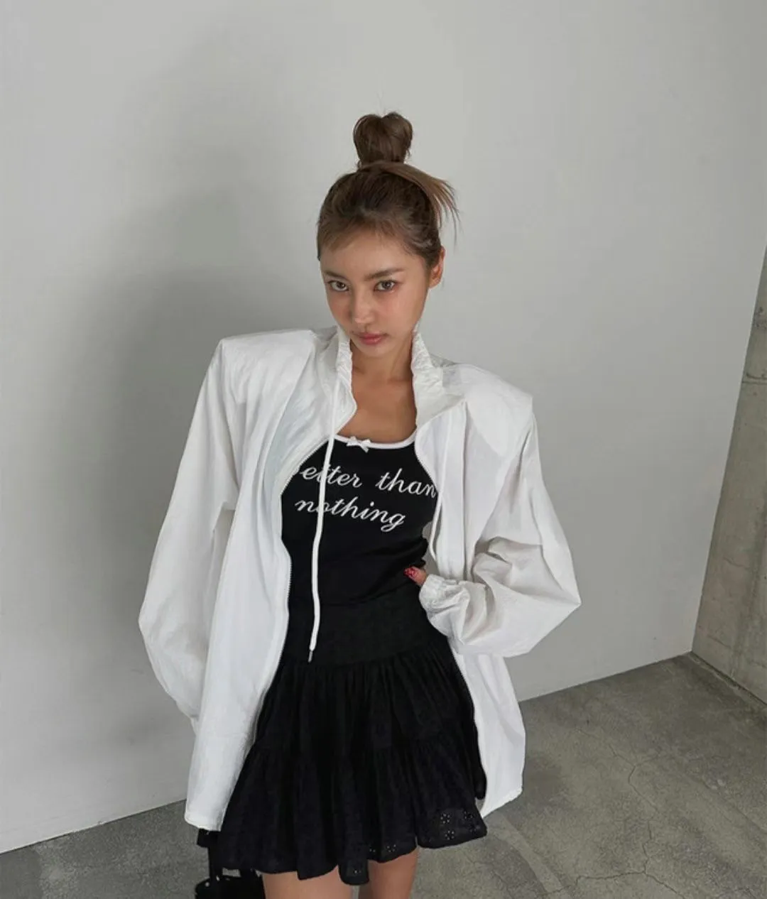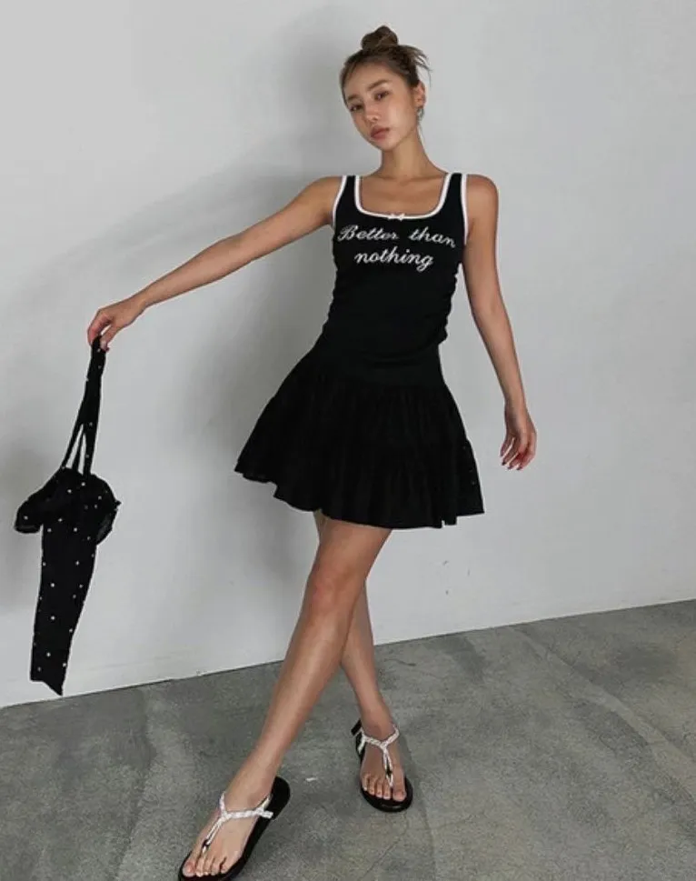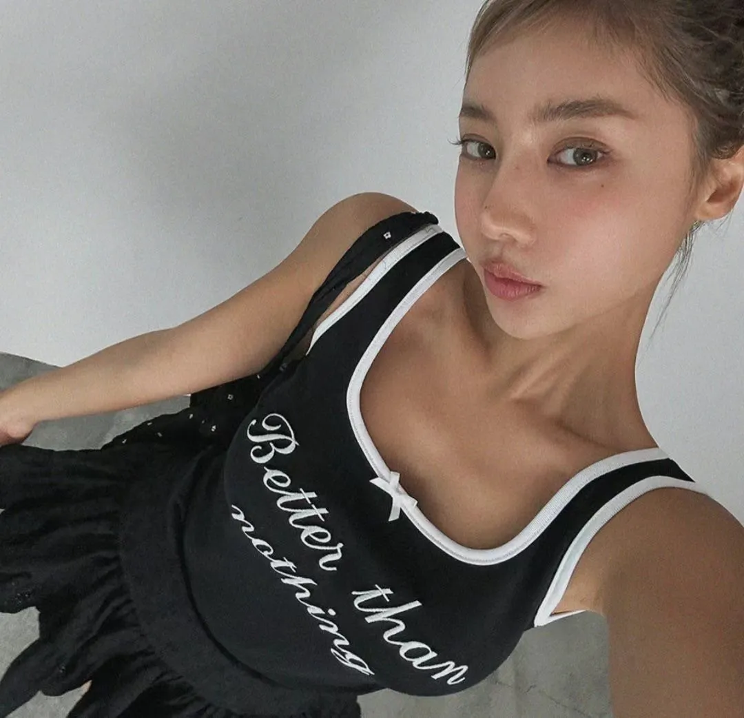 棉+彈力 英文刺繡 胸前小蝴蝶結 透氣舒適