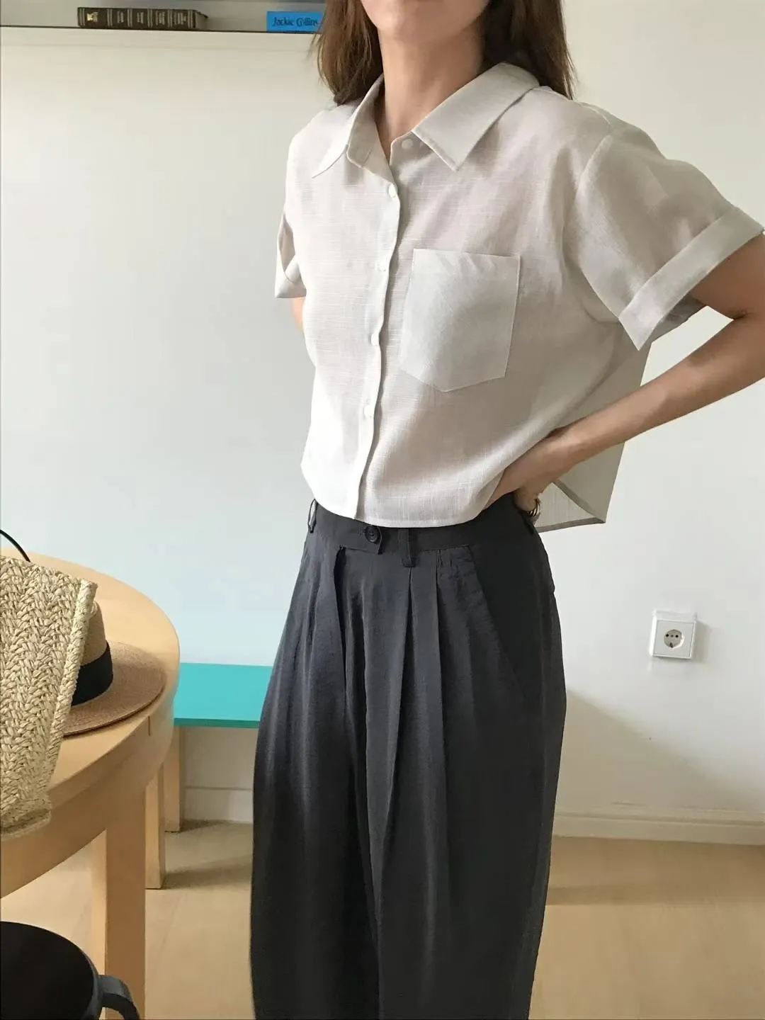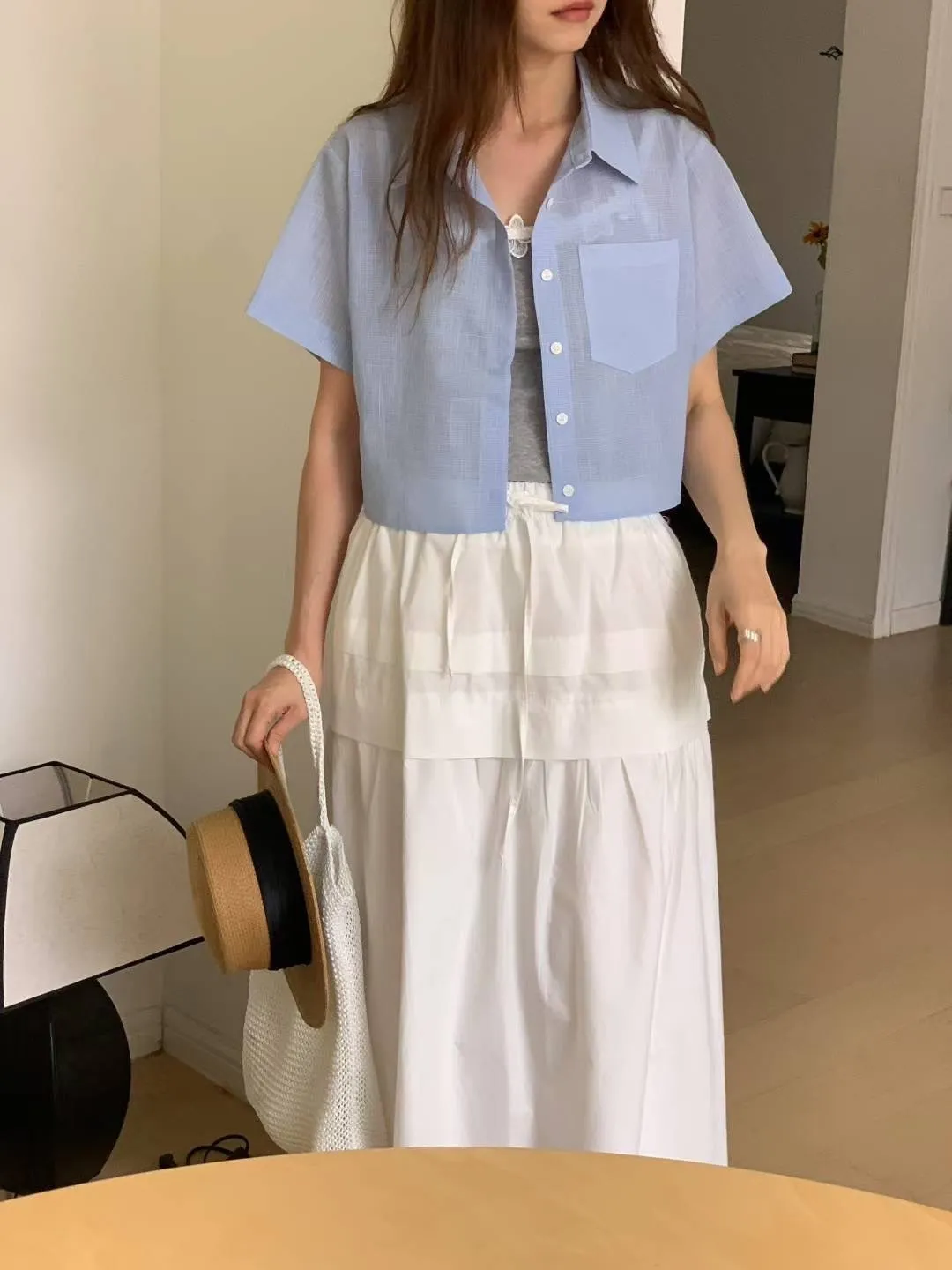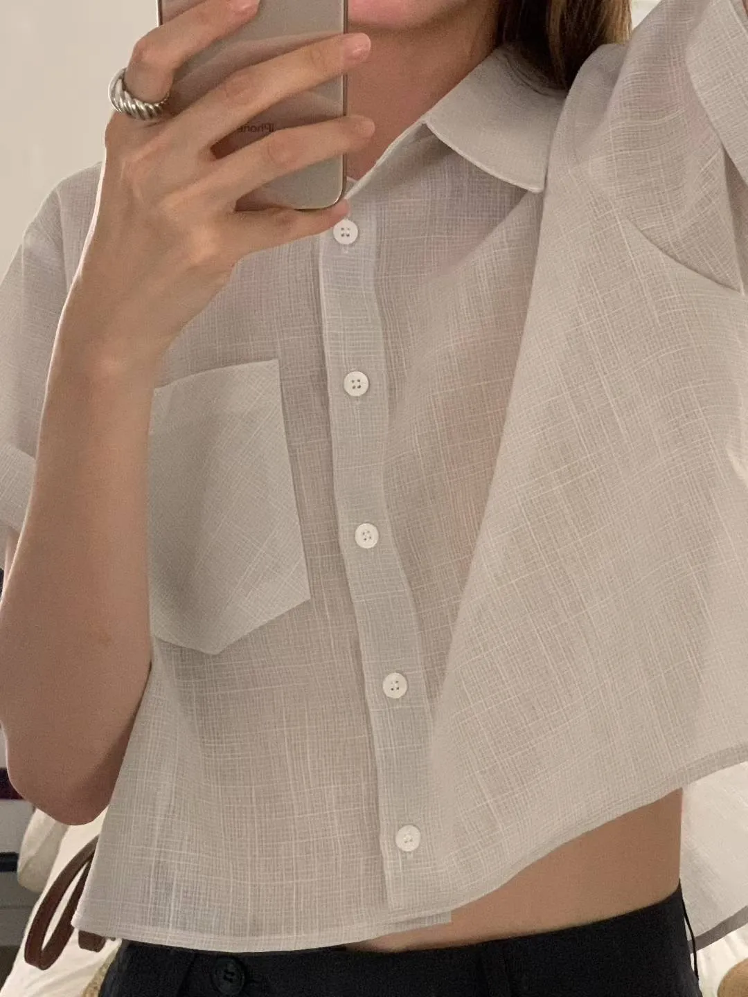 人造絲+聚酯,視覺高級 輕薄舒適 薄紗厚度 短版好比例 可上衣可罩衫
