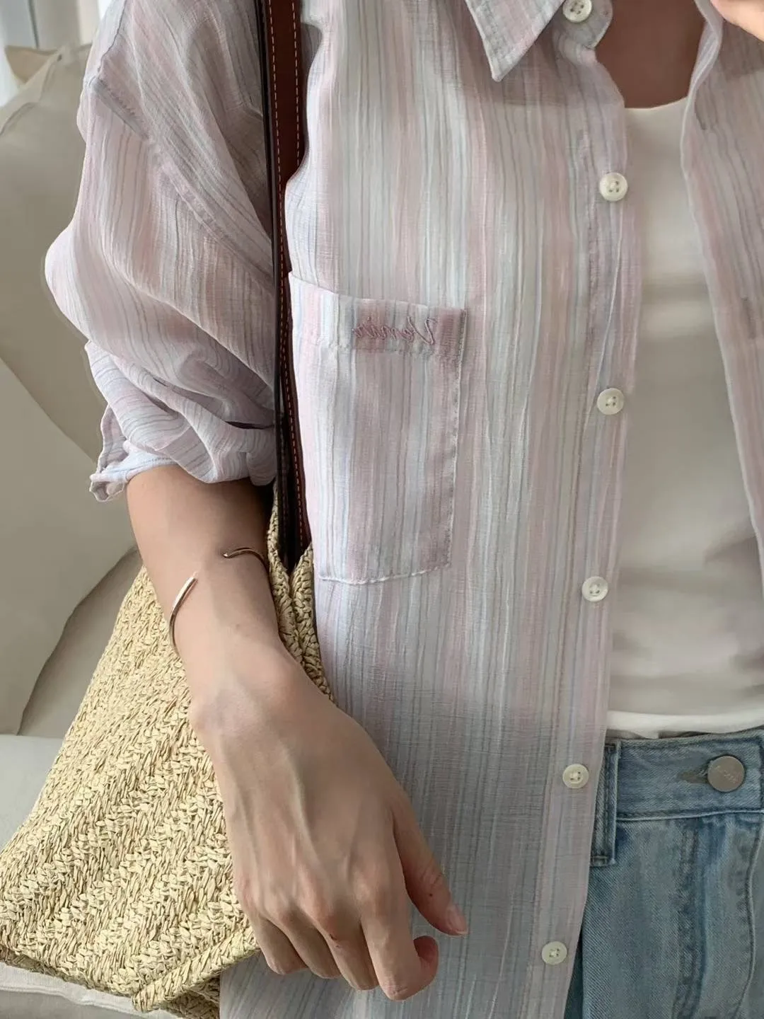 天絲65%+尼龍 薄款面料 口袋英文刺繡 細緻彩繪感 縫線無感