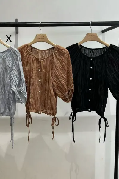 棉+人造絲 輕薄透氣 排釦穿脫 下擺抽繩 袖口彈性